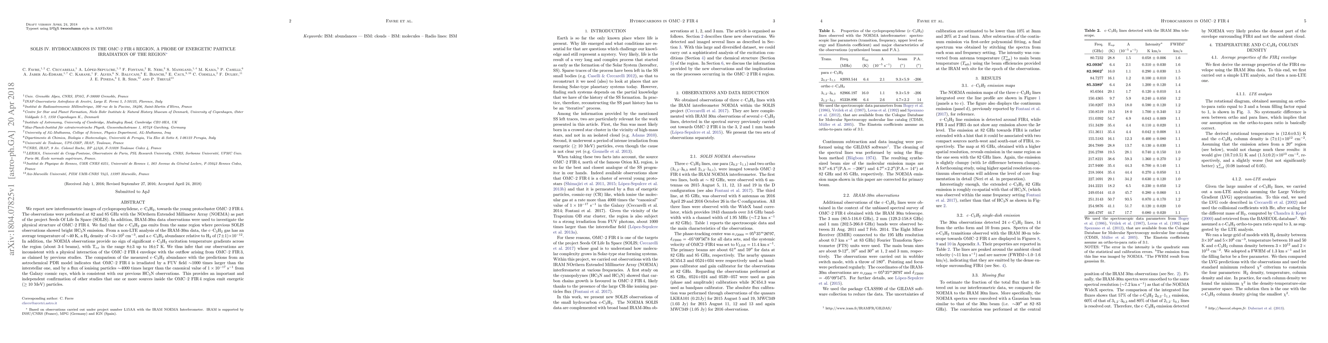 The SOLIS IV study reveals interferometric images of cyclopropenylidene (c-C$_3$H$_2$) in the OMC-2 FIR 4 region, indicating high temperatures and densities, and suggests energetic particle irradiation much stronger than typical interstellar conditions, contradicting previous claims of interaction with an outflow.