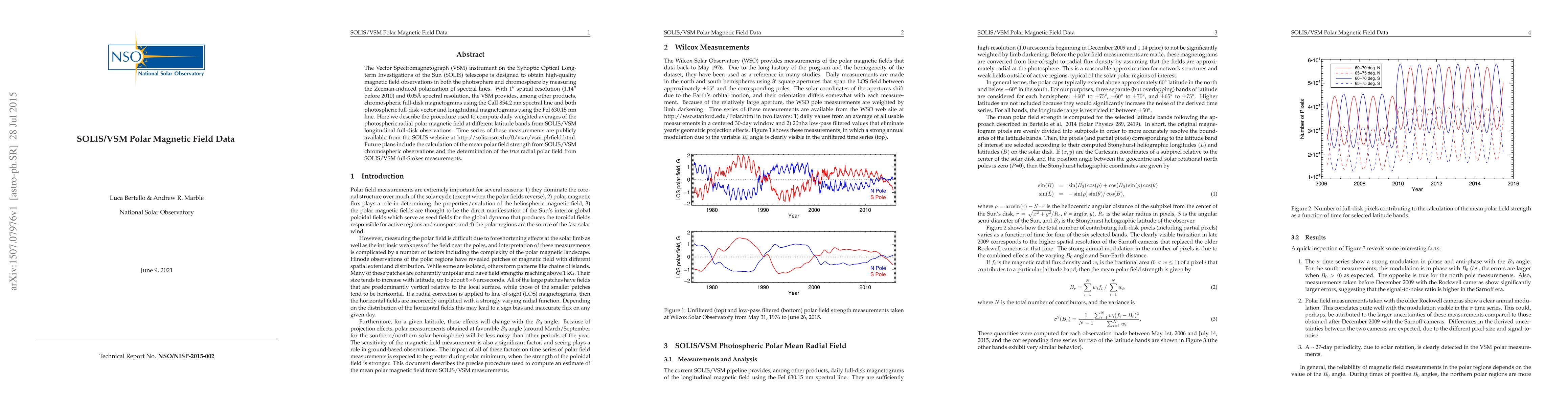 The SOLIS/VSM instrument captures high-resolution magnetic field data in the Sun's photosphere and chromosphere, providing daily weighted averages of the photospheric radial polar magnetic field. Future plans involve calculating the mean polar field strength from chromospheric observations and determining the true radial polar field from full-Stokes measurements.
