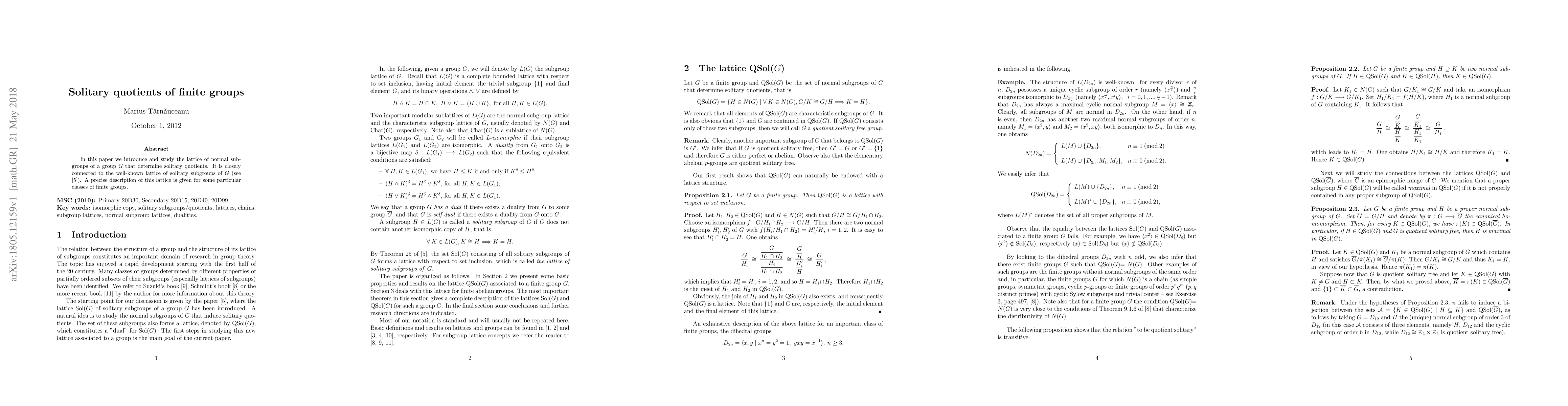 In this paper we introduce and study the lattice of normal subgroups of a group $G$ that determine solitary quotients. It is closely connected to the well-known lattice of solitary subgroups of $G$ (see \cite{5}). A precise description of this lattice is given for some particular classes of finite groups.