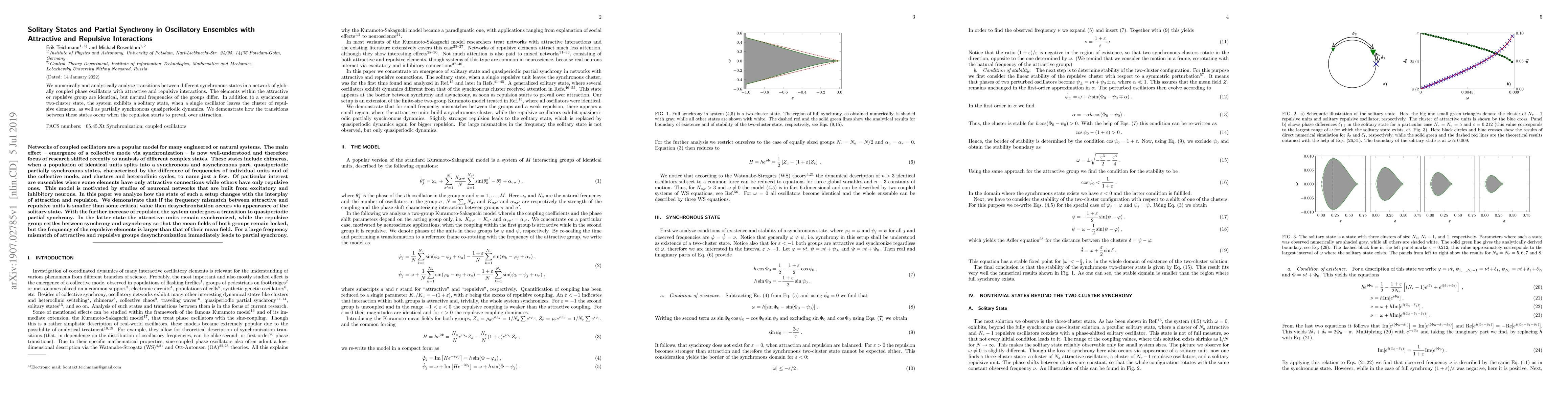 This paper investigates transitions between synchronous states in a network of globally coupled phase oscillators, focusing on the effects of both attractive and repulsive interactions. It reveals the emergence of solitary states and partially synchronous quasiperiodic dynamics as repulsion dominates attraction.