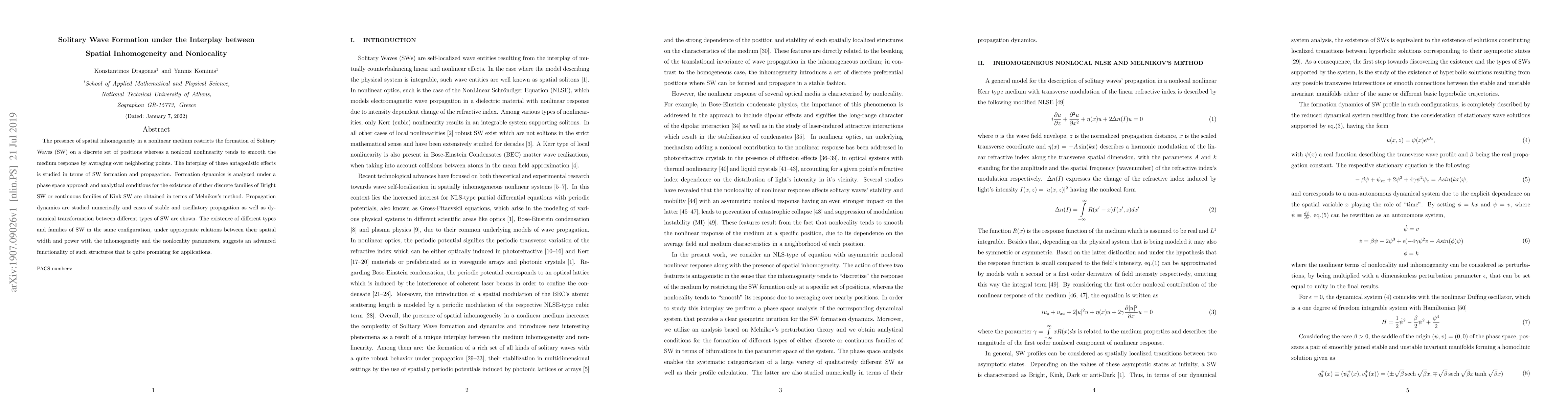 This paper investigates how solitary wave formation is influenced by spatial inhomogeneity and nonlocal nonlinearity in a nonlinear medium. Analytical and numerical studies reveal diverse solitary wave behaviors, including stable and oscillatory propagation, and suggest potential applications in advanced wave dynamics.