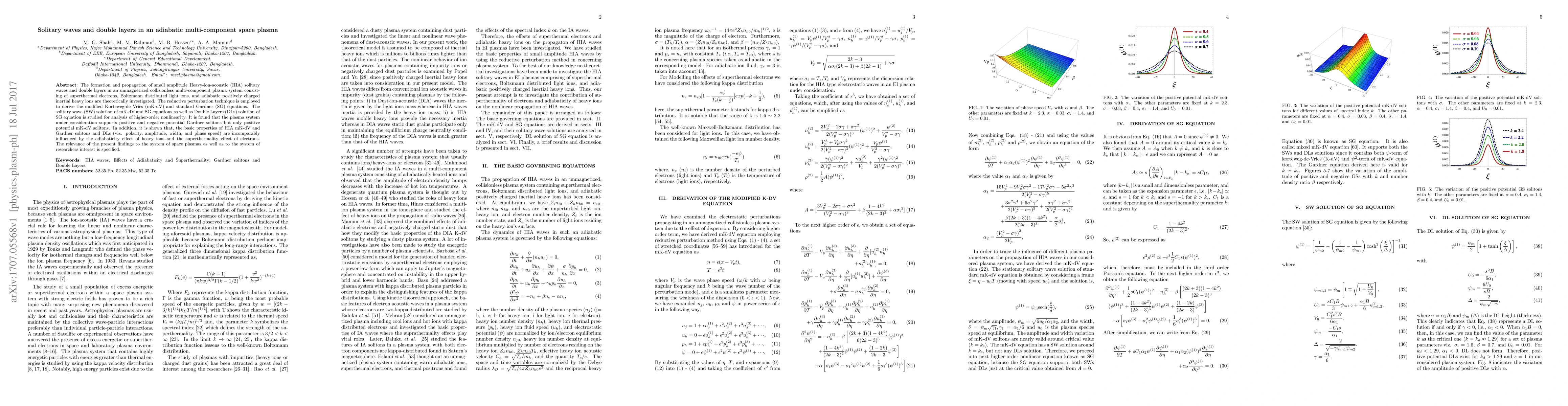 The formation and propagation of small amplitude Heavy-ion-acoustic (HIA) solitary waves and double layers in an unmagnetized collisionless multi-component plasma system consisting of superthermal electrons, Boltzmann distributed light ions, and adiabatic positively charged inertial heavy ions are theoretically investigated. The reductive perturbation technique is employed to derive the modified Korteweg-de Vries (mK-dV) and standard Gardner (SG) equations. The solitary wave (SW) solution of mK-dV and SG equations as well as Double Layers (DLs) solution of SG equation is studied for analysis of higher-order nonlinearity. It is found that the plasma system under consideration supports positive and negative potential Gardner solitons but only positive potential mK-dV solitons. In addition, it is shown that, the basic properties of HIA mK-dV and Gardner solitons and DLs (viz. polarity, amplitude, width, and phase speed) are incomparably influenced by the adiabaticity effect of heavy ions and the superthermality effect of electrons. The relevance of the present findings to the system of space plasmas as well as to the system of researchers interest is specified.