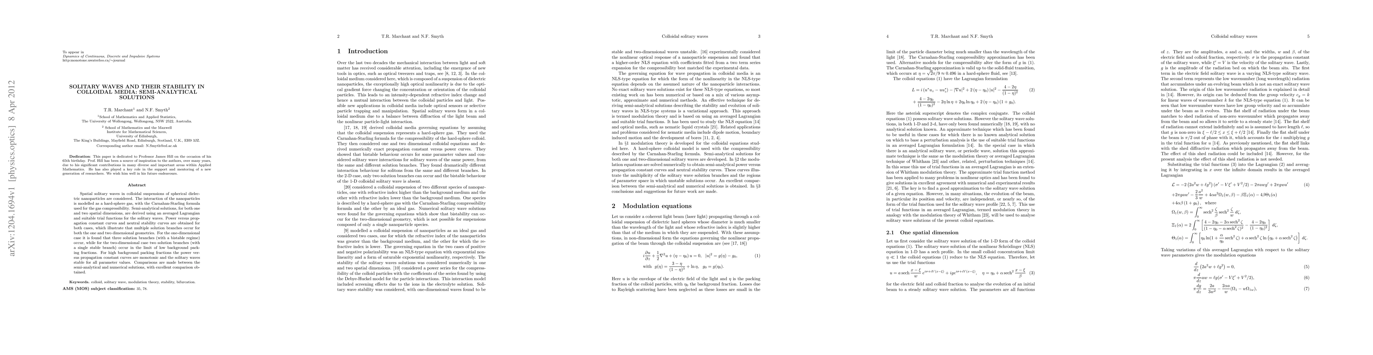 This study develops semi-analytical methods to analyze solitary waves in colloidal suspensions, revealing multiple solution branches and stability regimes depending on particle density. The findings enhance understanding of wave behavior in complex media, with results closely matching numerical simulations.