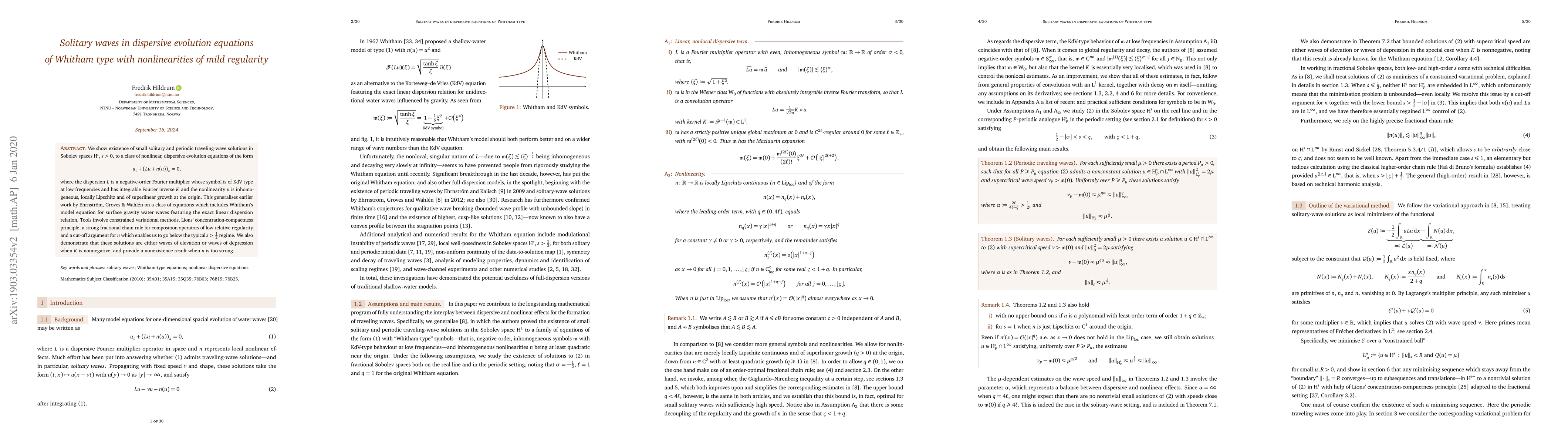 Research paper shows existence of small solitary and periodic traveling-wave solutions in dispersive evolution equations with mild nonlinearities, expanding earlier work on surface gravity water waves.