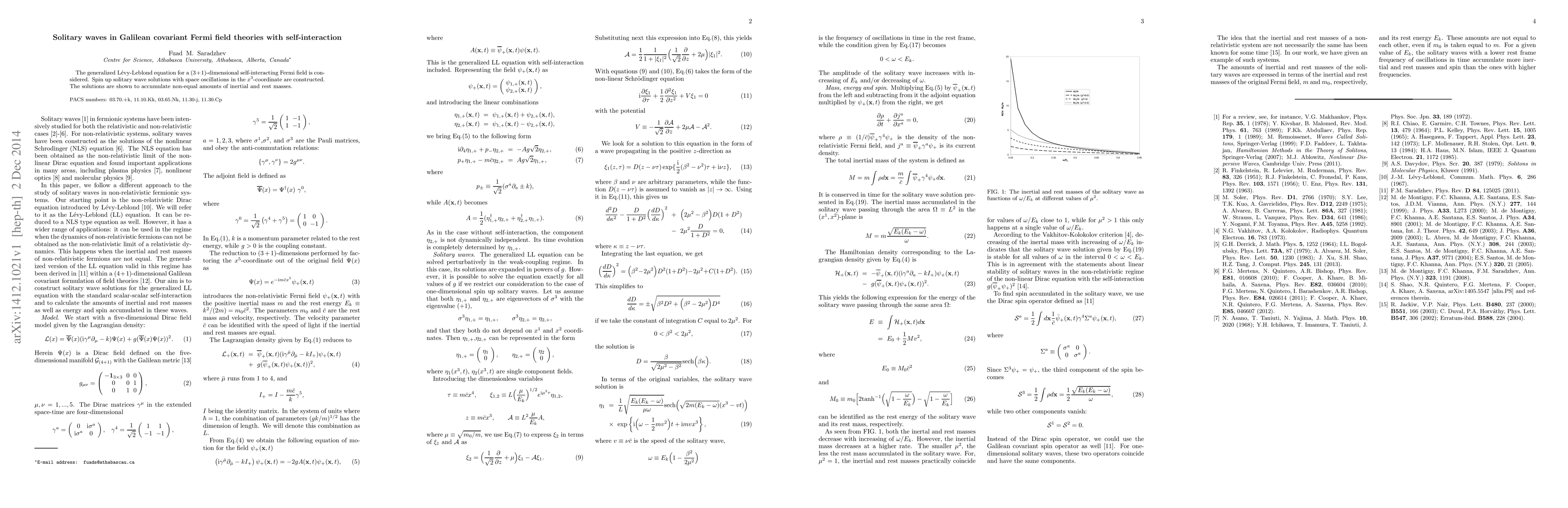 Researchers found solitary wave solutions in a mathematical model of self-interacting Fermi fields that accumulate different amounts of mass and energy.