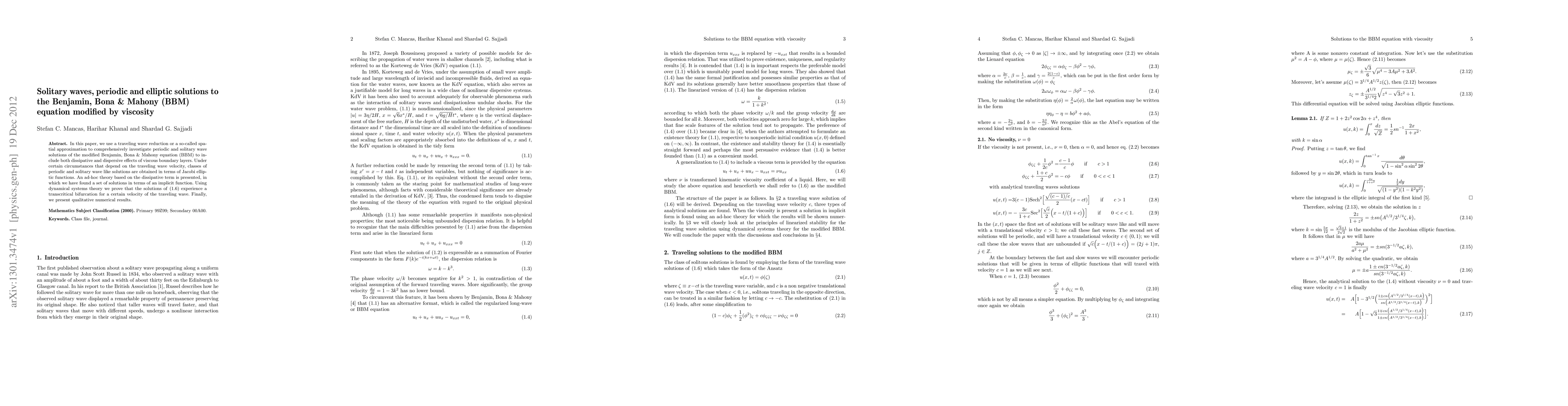 This paper investigates periodic and solitary wave solutions to the modified Benjamin, Bona & Mahony (BBM) equation incorporating viscous effects. It finds solutions in terms of Jacobi elliptic functions and proves a transcritical bifurcation using dynamical systems theory, with qualitative numerical results presented.