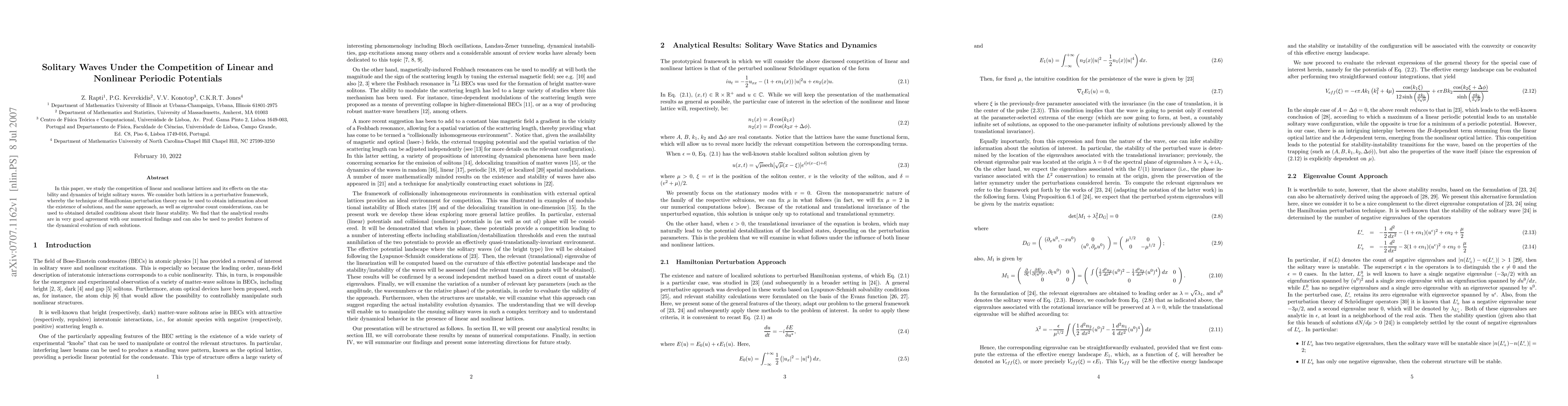 This paper investigates how linear and nonlinear periodic potentials compete to influence the stability and dynamics of bright solitary waves in lattices. Using Hamiltonian perturbation theory and eigenvalue analysis, the study reveals conditions for stability and predicts the dynamical evolution, with analytical results matching numerical findings.