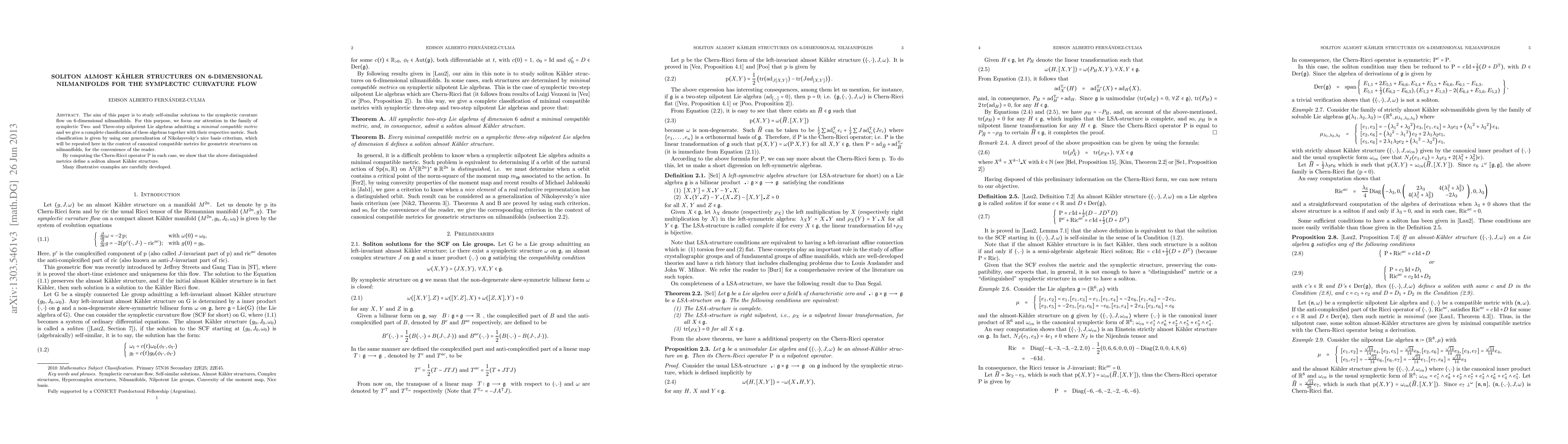 The aim of this paper is to study self-similar solutions to the symplectic cuvature flow on 6-dimensional nilmanifolds. For this purpose, we focus our attention in the family of symplectic Two- and Three-step nilpotent Lie algebras admitting a "minimal compatible metric" and we give a complete classification of these algebras together with their respective metric. Such classification is given by using our generalization of Nikolayevsky's nice basis criterium (arXiv:1301.4949), which will be repeated here in the context of canonical compatible metrics for geometric structures on nilmanifolds, for the convenience of the reader. By computing the Chern-Ricci operator $P$ in each case, we show that the above distinguished metrics define a soliton almost K\"{a}hler structure. Many illustrative examples are carefully developed.