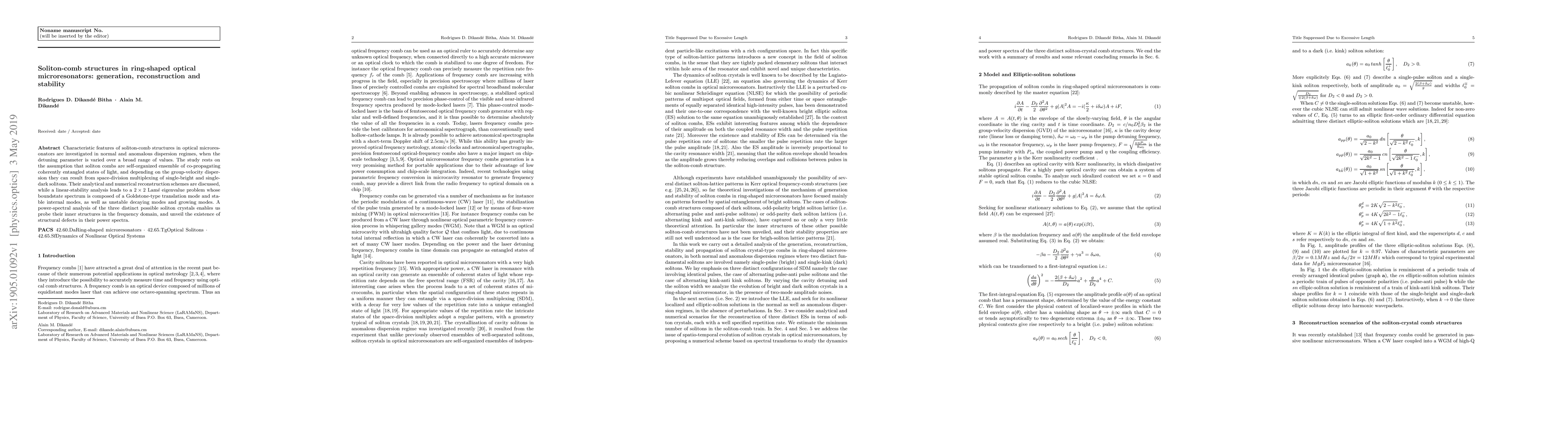 This paper investigates soliton-comb structures in optical microresonators, exploring their generation and stability under varying dispersion regimes. It reveals the self-organization of these structures and their reconstruction through analytical and numerical methods, while identifying distinct stable and unstable modes through a linear-stability analysis.