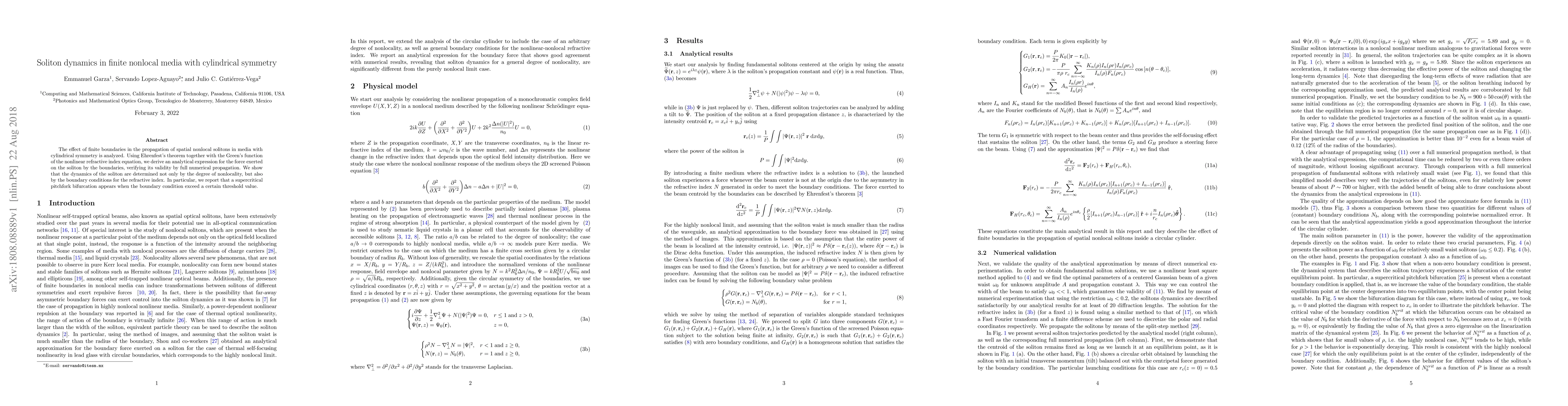 This paper analyzes soliton dynamics in finite nonlocal media with cylindrical symmetry, deriving an analytical expression for boundary-induced forces on solitons. The study reveals that soliton behavior is influenced by both nonlocality and boundary conditions, highlighting a supercritical pitchfork bifurcation under specific boundary conditions.