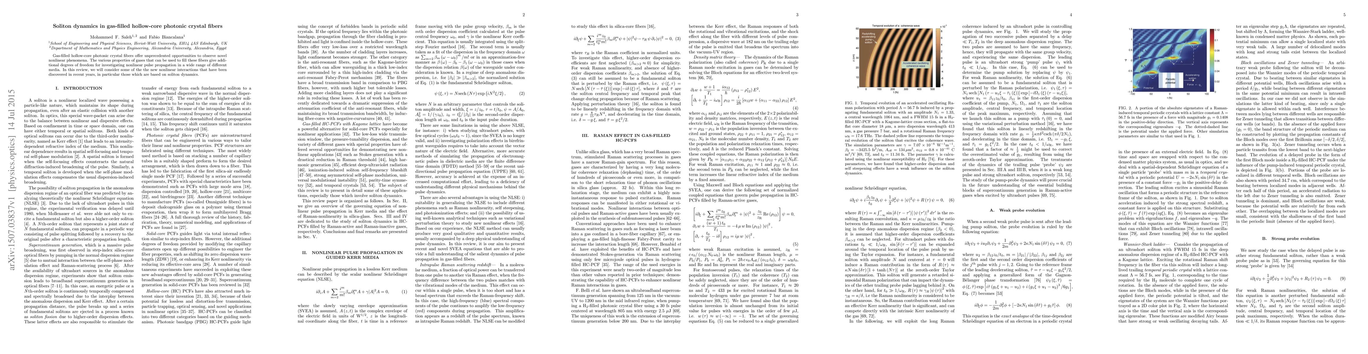Gas-filled hollow-core photonic crystal fibers offer unprecedented opportunities to observe novel nonlinear phenomena. The various properties of gases that can be used to fill these fibers give additional degrees of freedom for investigating nonlinear pulse propagation in a wide range of different media. In this review, we will consider some of the the new nonlinear interactions that have been discovered in recent years, in particular those which are based on soliton dynamics.