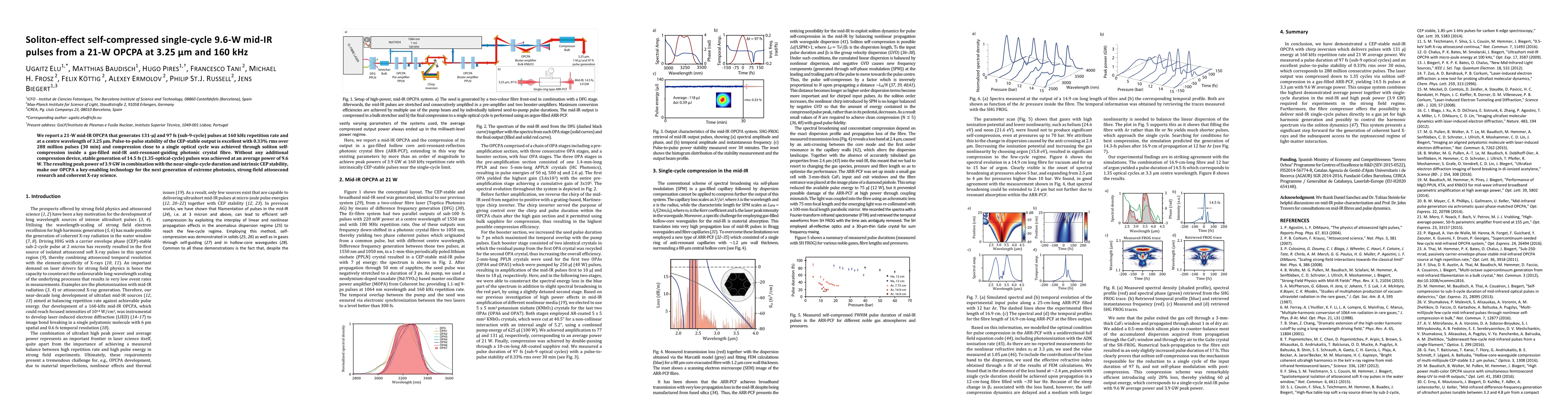 This paper reports a 21-W mid-IR optical parametric chirped pulse amplification (OPCPA) system generating 131-µJ, 97 fs pulses at 3.25 µm, achieving soliton self-compression to produce 14.5 fs pulses with 9.6 W average power, enabling advanced photonics and attosecond research. The system demonstrates exceptional pulse-to-pulse stability and near-single-cycle pulse duration.