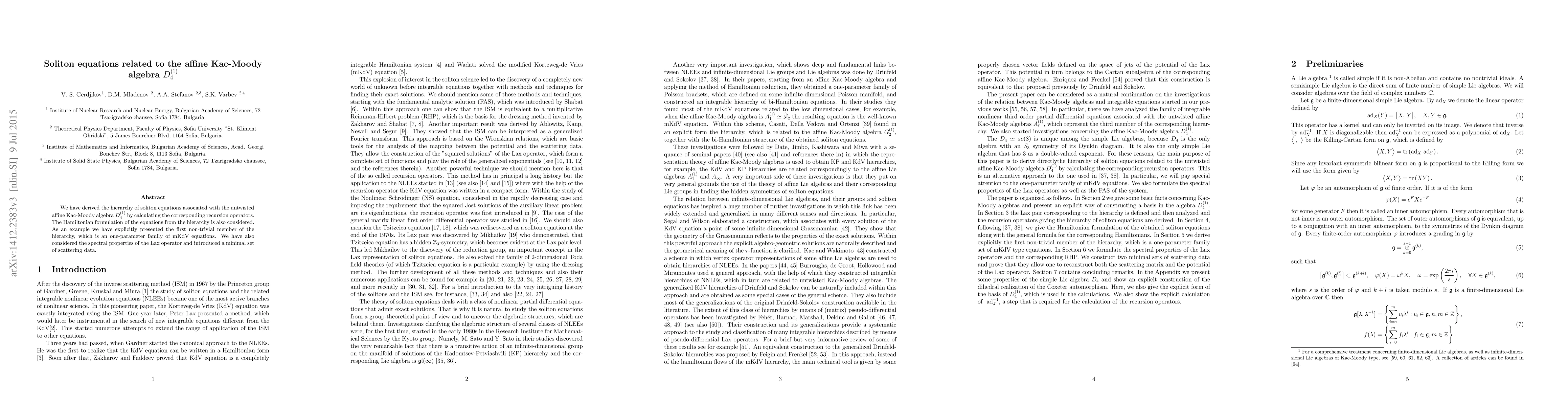 Researchers derived soliton equations from the affine Kac-Moody algebra D^(1)_4, including a specific one-parameter family of mKdV equations, and explored their Hamiltonian formulation and scattering data properties.