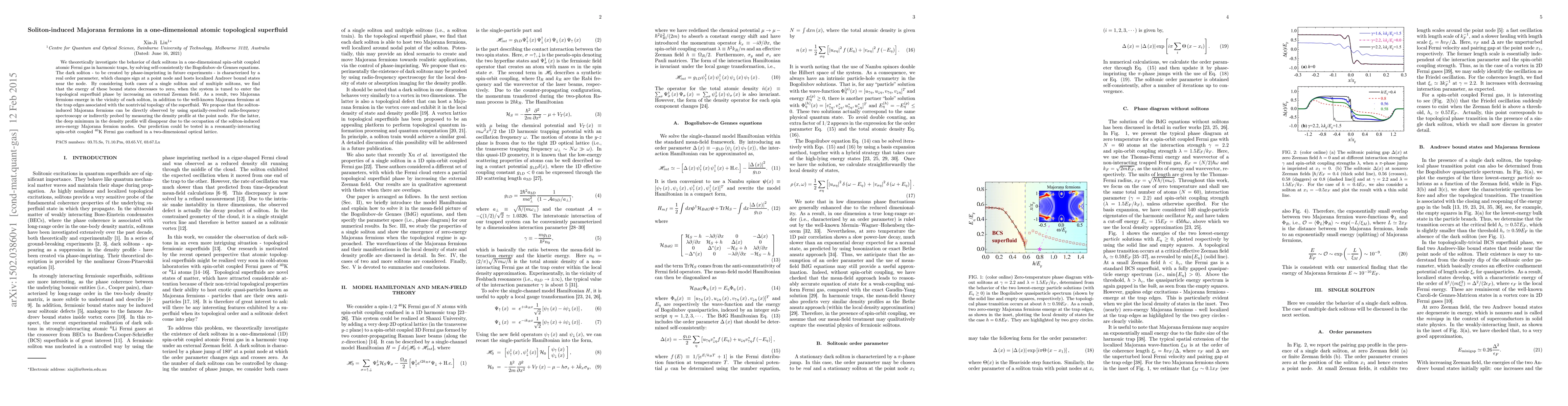 This paper explores the emergence of soliton-induced Majorana fermions in a one-dimensional topological superfluid of spin-orbit coupled Fermi gases. The study reveals that dark solitons create localized Andreev bound states that evolve into Majorana fermions as the system transitions to the topological phase, which can be observed via radio-frequency spectroscopy or density profile measurements.