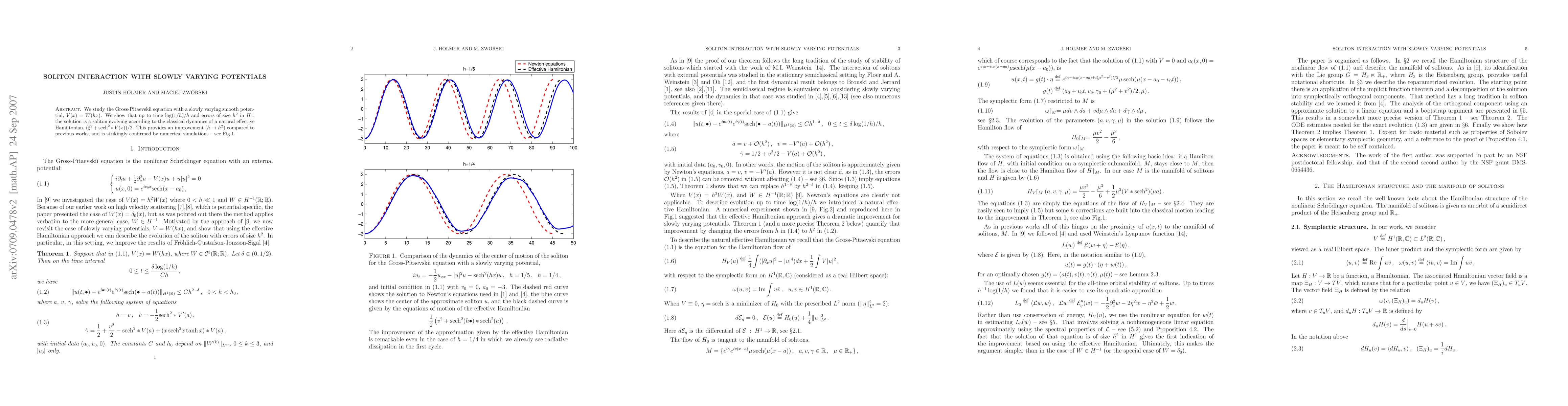 Researchers study soliton interactions with slowly varying potentials, finding that solutions behave classically up to a certain time scale and error tolerance, improving upon previous results.