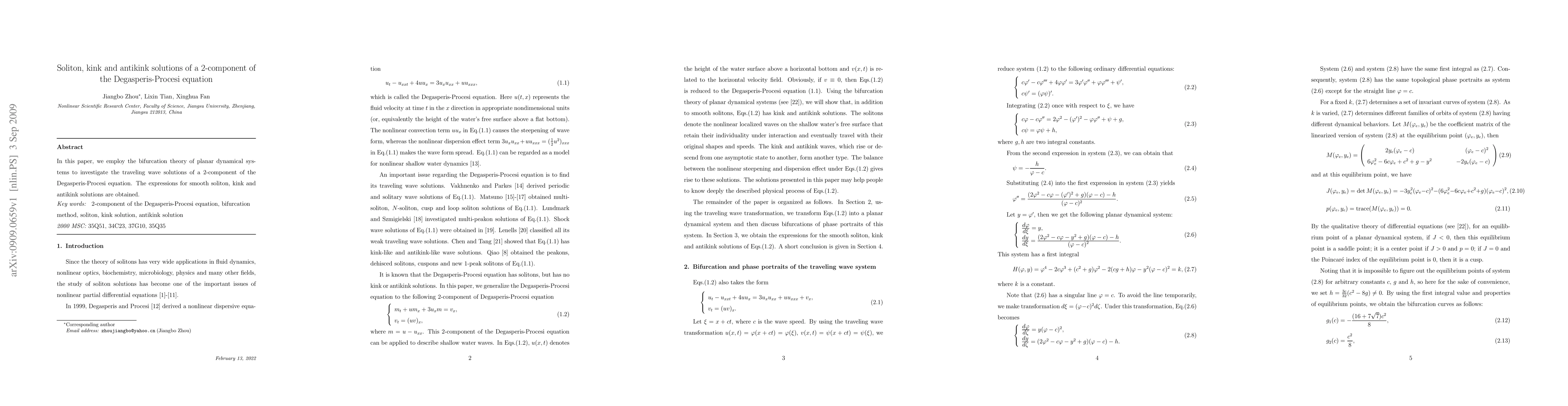 This paper uses bifurcation theory to explore traveling wave solutions of a 2-component Degasperis-Procesi equation, deriving expressions for soliton, kink, and antikink solutions.