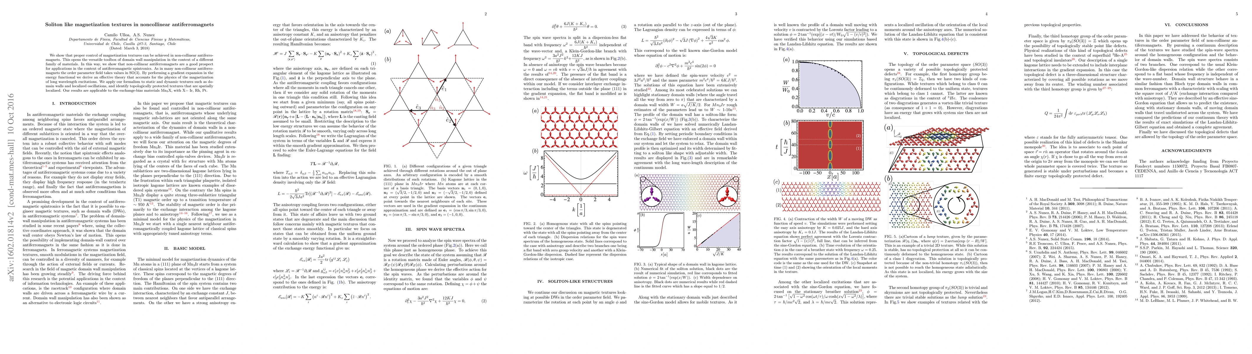 We show that proper control of magnetization textures can be achieved in noncollinear antiferromagnets. This opens the versatile toolbox of domain-wall manipulation in the context of a different family of materials. In this way, we show that noncollinear antiferromagnets are a good prospect for applications in the context of antiferromagnetic spintronics. As in many noncollinear antiferromagnets, the order parameter field takes values in SO(3). By performing a gradient expansion in the energy functional we derive an effective theory that accounts for the physics of the magnetization of long-wavelength excitations. We apply our formalism to static and dynamic textures such as domain walls and localized oscillations, and identify topologically protected textures that are spatially localized. Our results are applicable to the exchange-bias materials Mn3X, with X = Ir, Rh, Pt.