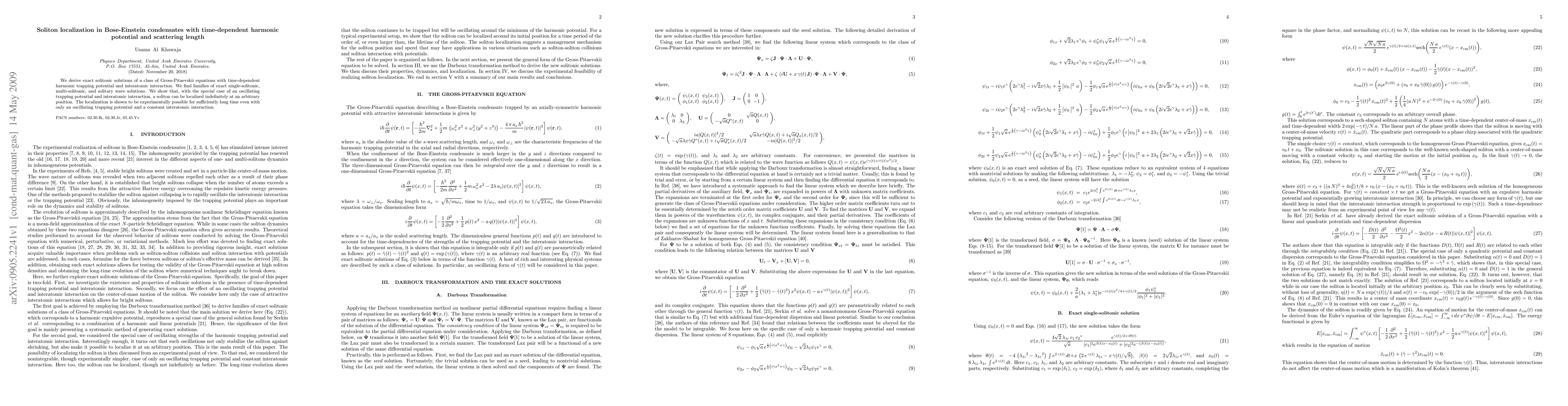 Researchers found exact soliton solutions in Bose-Einstein condensates with time-dependent harmonic traps and varying interatomic interactions, showing that localized solitons can exist indefinitely.