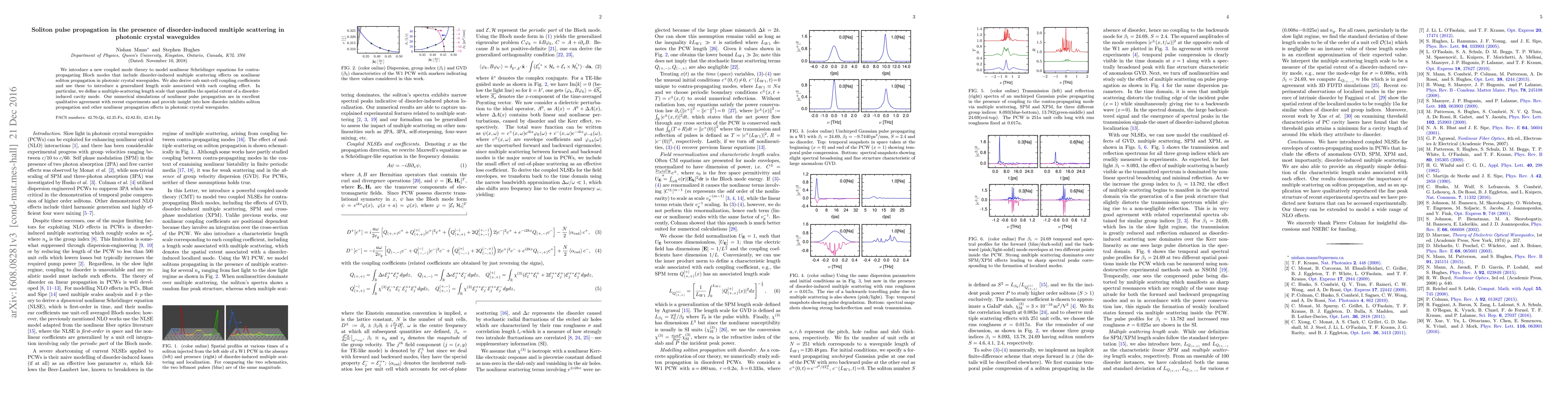 This research develops a new coupled mode theory to model soliton pulse propagation in photonic crystal waveguides, incorporating disorder-induced multiple scattering. It defines a multiple-scattering length scale and demonstrates strong agreement between simulations and experimental observations on how disorder affects soliton and nonlinear propagation.