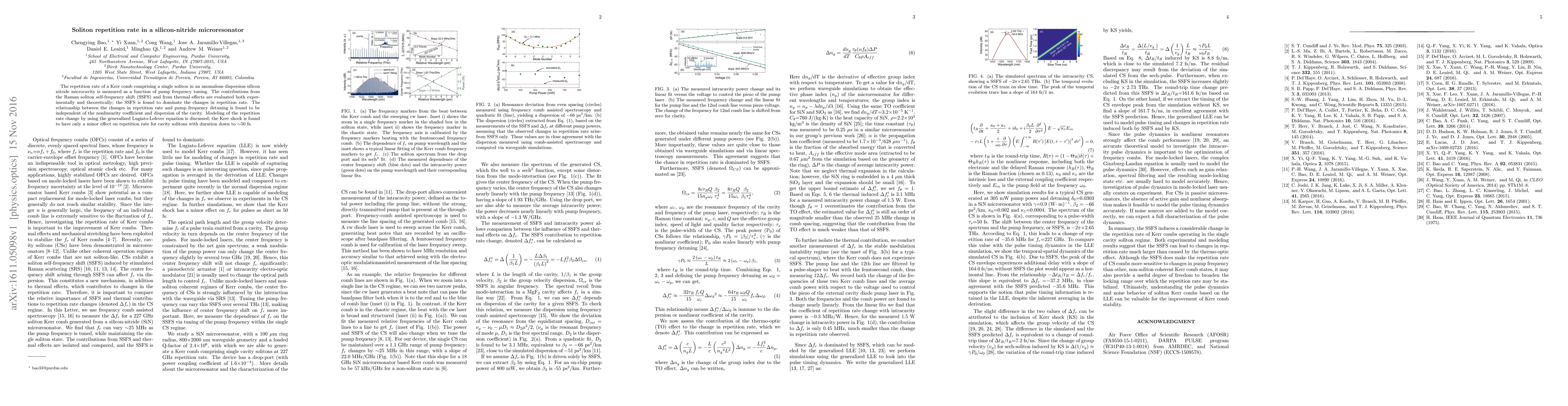 This research measures the soliton repetition rate in a silicon-nitride microresonator, finding that Raman soliton self-frequency shift significantly influences rate changes, independent of cavity nonlinearity and dispersion. The generalized Lugiato-Lefever equation models these changes, revealing Kerr shocks have minimal impact on short-duration cavity solitons.