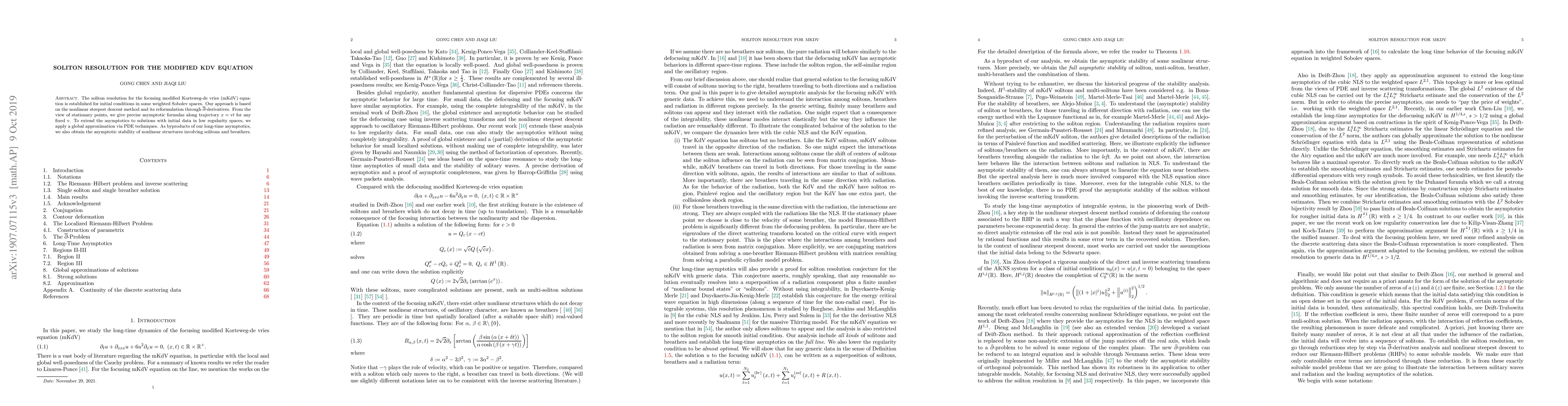 Researchers establish a soliton resolution for the modified KdV equation in weighted Sobolev spaces, providing asymptotic formulas and stability analysis through nonlinear steepest descent methods.