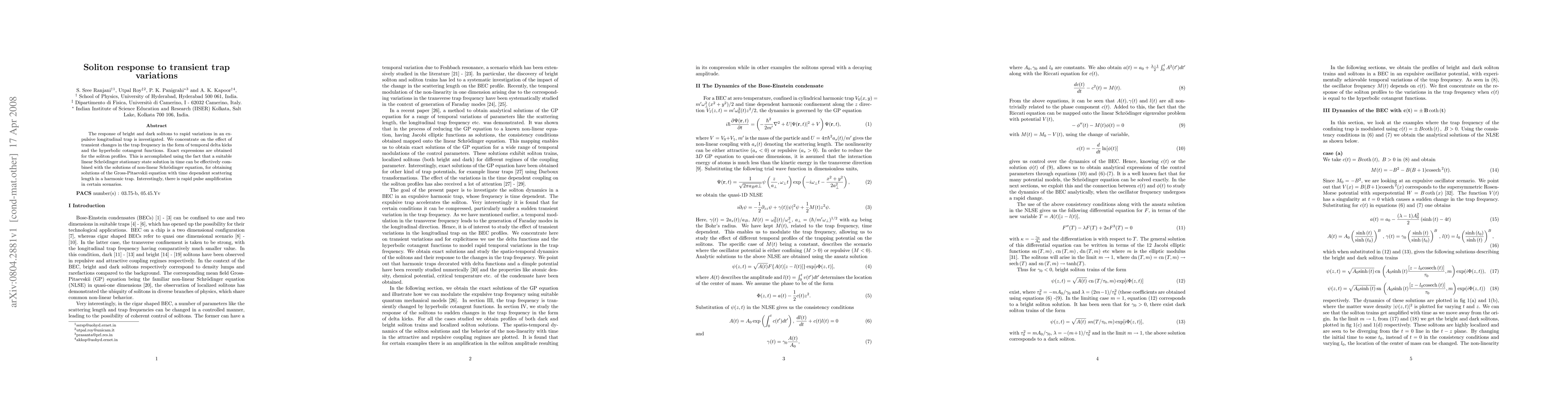 Researchers investigate how bright and dark solitons respond to rapid changes in a trap's frequency, finding that some scenarios result in pulse amplification.