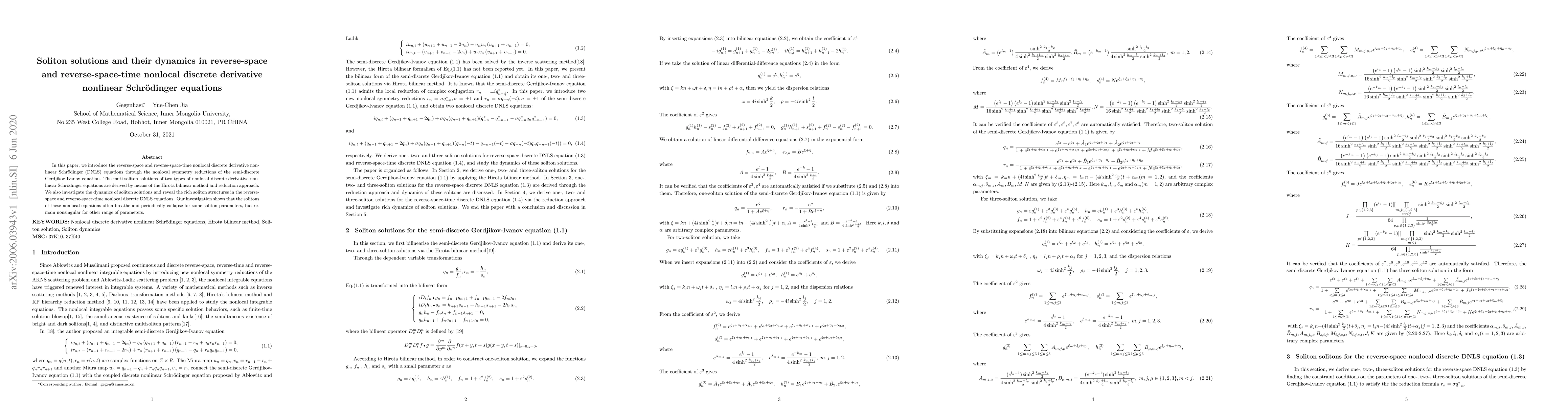 This paper explores soliton solutions and dynamics in reverse-space and reverse-space-time nonlocal discrete derivative nonlinear Schrödinger equations, deriving multi-soliton solutions using the Hirota method and investigating their behaviors, which reveal periodic breathing and collapse phenomena for certain parameters.