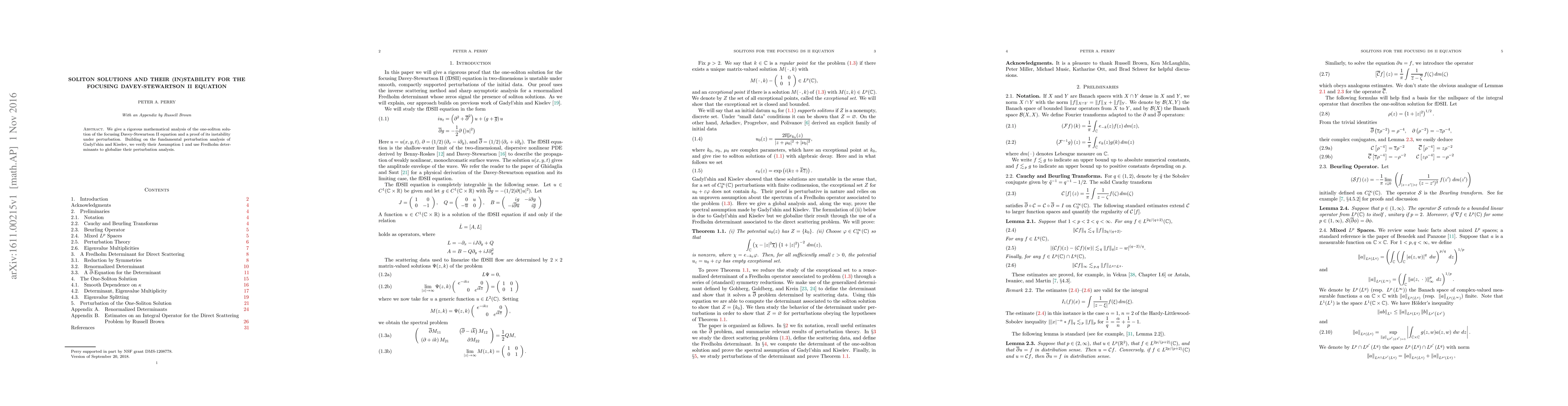 This paper rigorously analyzes the one-soliton solution of the focusing Davey-Stewartson II equation and proves its instability under perturbation. It builds on the foundational work of Gadyl'shin and Kiselev, verifying their Assumption 1 and employing Fredholm determinants to extend their perturbation analysis.
