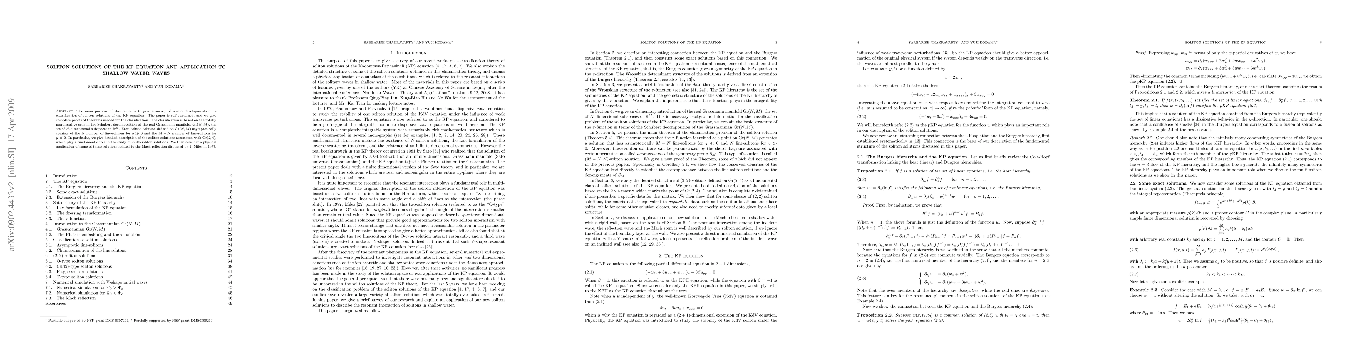 This paper surveys recent developments in classifying soliton solutions of the KP equation using Schubert decomposition of the real Grassmann manifold, Gr$(N,M)$. It provides a detailed description of soliton solutions associated with Gr$(2,4)$ and applies these solutions to the physical phenomenon of Mach reflection in shallow water waves.