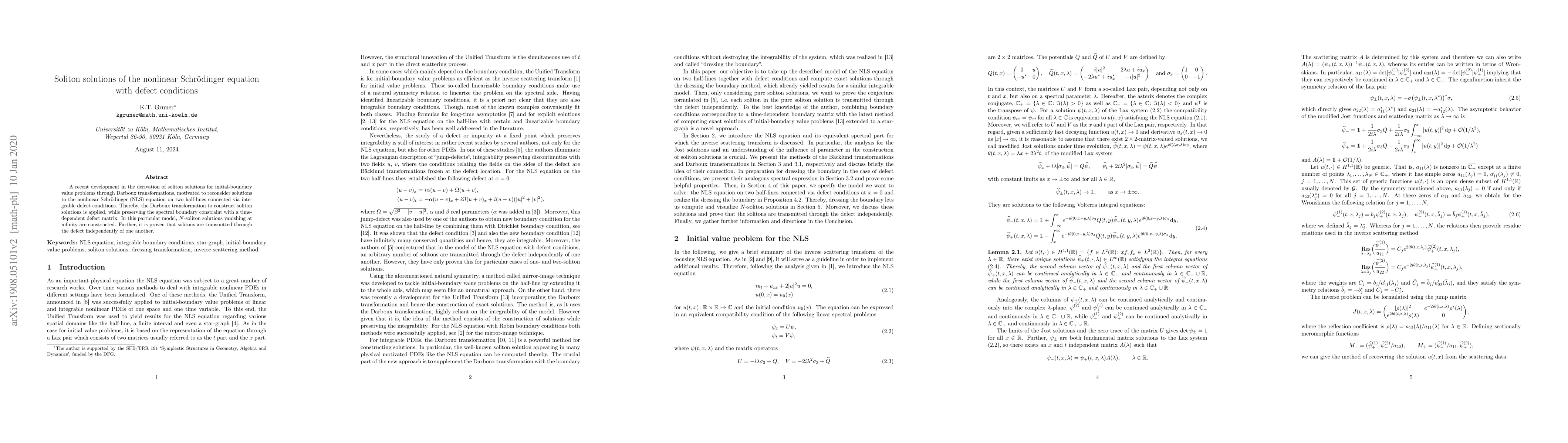 A recent development in the derivation of soliton solutions for initial-boundary value problems through Darboux transformations, motivated to reconsider solutions to the nonlinear Schr\"odinger (NLS) equation on two half-lines connected via integrable defect conditions. Thereby, the Darboux transformation to construct soliton solutions is applied, while preserving the spectral boundary constraint with a time-dependent defect matrix. In this particular model, $N$-soliton solutions vanishing at infinity are constructed. Further, it is proven that solitons are transmitted through the defect independently of one another.
