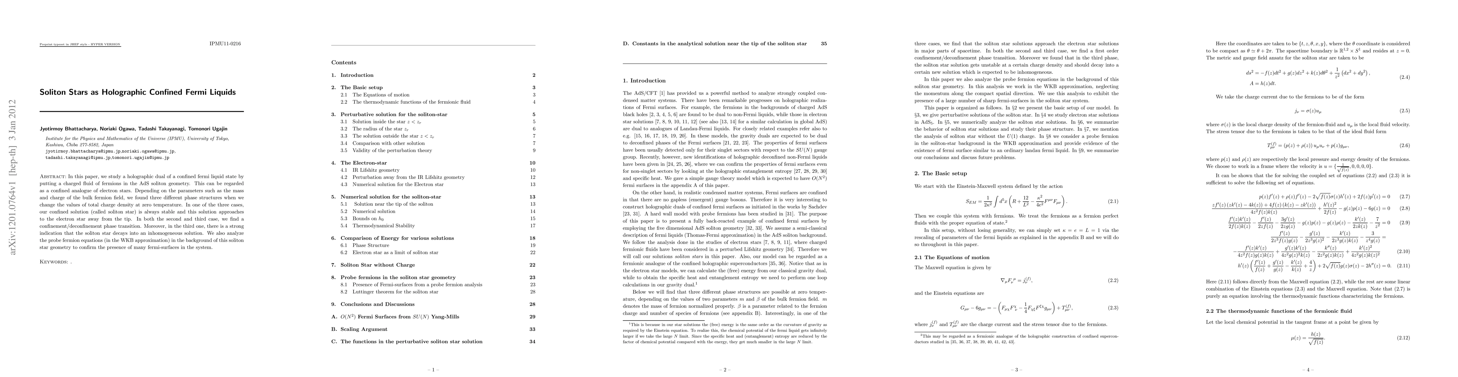 In this paper, we study a holographic dual of a confined fermi liquid state by putting a charged fluid of fermions in the AdS soliton geometry. This can be regarded as a confined analogue of electron stars. Depending on the parameters such as the mass and charge of the bulk fermion field, we found three different phase structures when we change the values of total charge density at zero temperature. In one of the three cases, our confined solution (called soliton star) is always stable and this solution approaches to the electron star away from the tip. In both the second and third case, we find a confinement/deconfinement phase transition. Moreover, in the third one, there is a strong indication that the soliton star decays into an inhomogeneous solution. We also analyze the probe fermion equations (in the WKB approximation) in the background of this soliton star geometry to confirm the presence of many fermi-surfaces in the system.