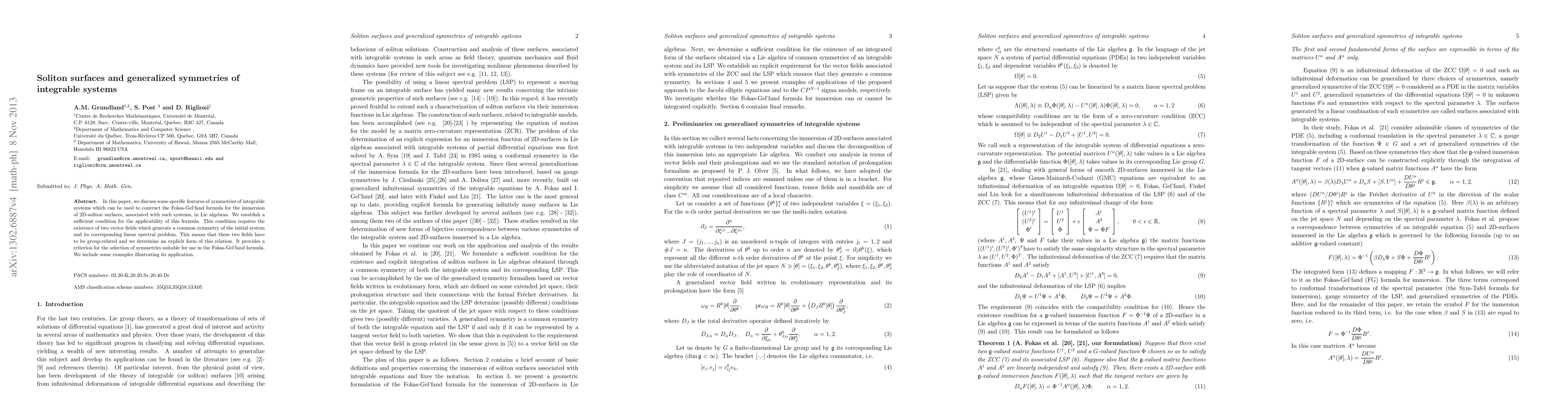 Researchers develop a formula to construct 2D soliton surfaces in integrable systems using symmetries from Lie algebras, requiring two vector fields that generate a common symmetry.