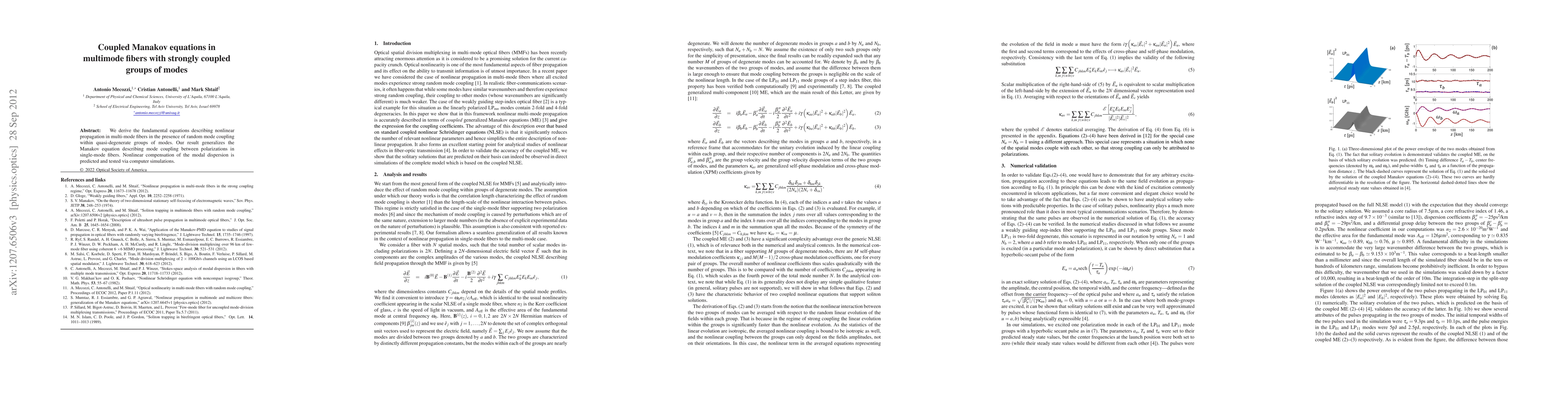 This paper develops equations for nonlinear propagation in multi-mode fibers with random mode coupling, extending the Manakov equation. It predicts nonlinear compensation for modal dispersion and validates the findings through computer simulations.