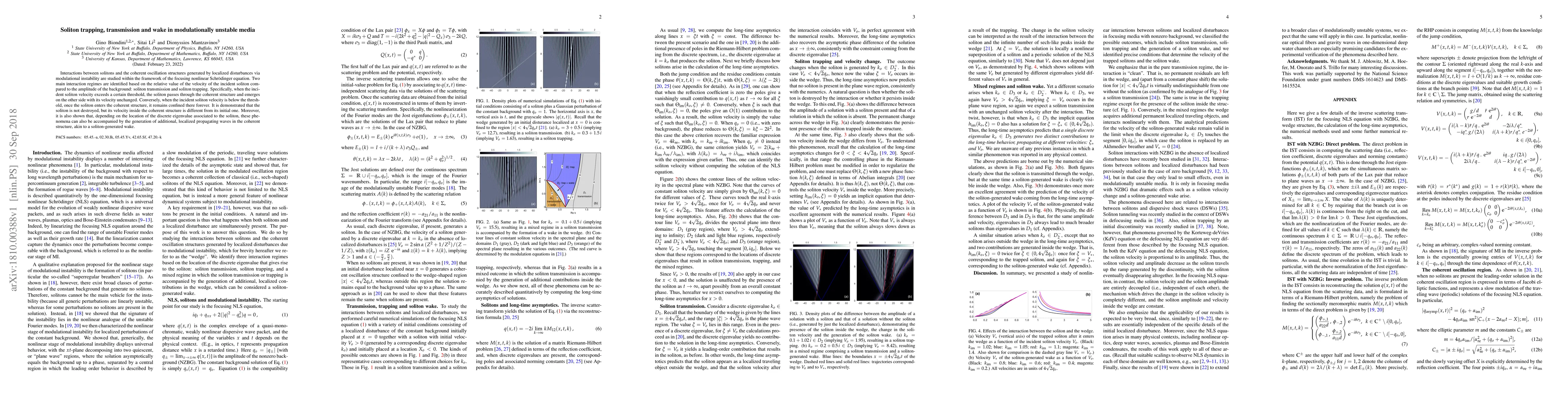 Research studies soliton behavior in modulational unstable media, revealing two interaction regimes: soliton transmission and trapping. Solitons can pass through coherent structures with velocity unchanged or become trapped forever, generating additional waves.