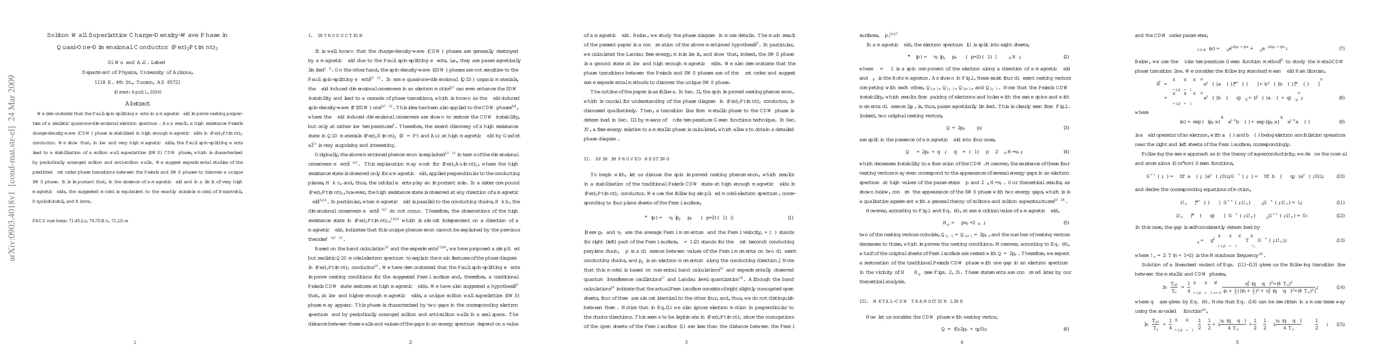 This paper demonstrates that Pauli spin-splitting in a magnetic field enhances nesting in a quasi-one-dimensional conductor, leading to a stabilized high resistance Peierls charge-density-wave phase. It also predicts a soliton wall superlattice charge-density-wave phase characterized by periodic soliton and anti-soliton walls, suggesting first-order phase transitions for experimental study.