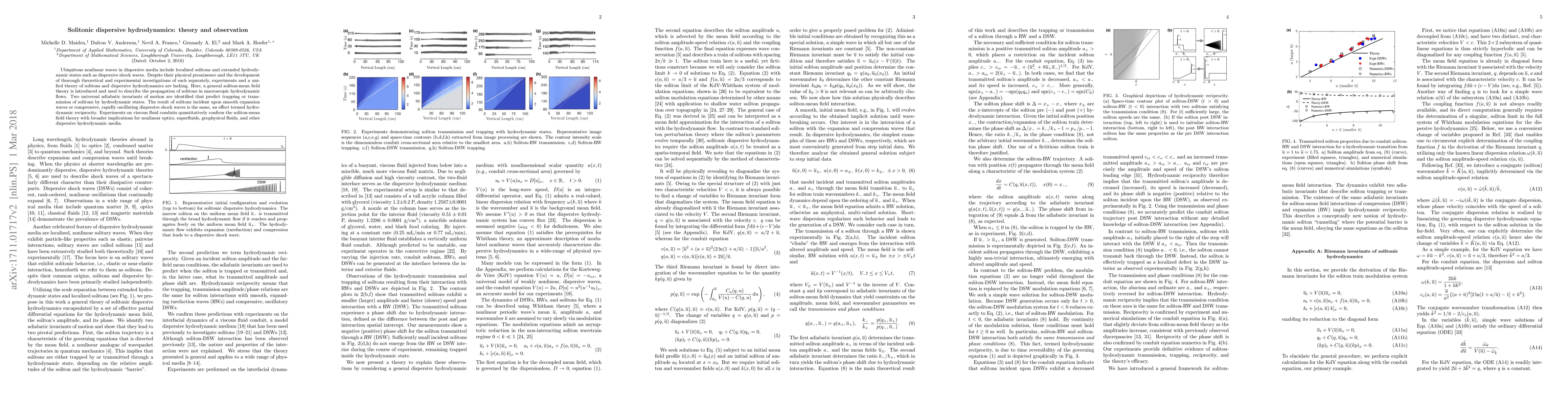 This paper introduces a unified soliton-mean field theory to describe soliton propagation in dispersive hydrodynamic flows, identifying two universal adiabatic invariants that predict soliton interactions. Experiments in viscous fluid conduits confirm the theory, with implications for nonlinear optics, superfluids, and geophysical fluids.