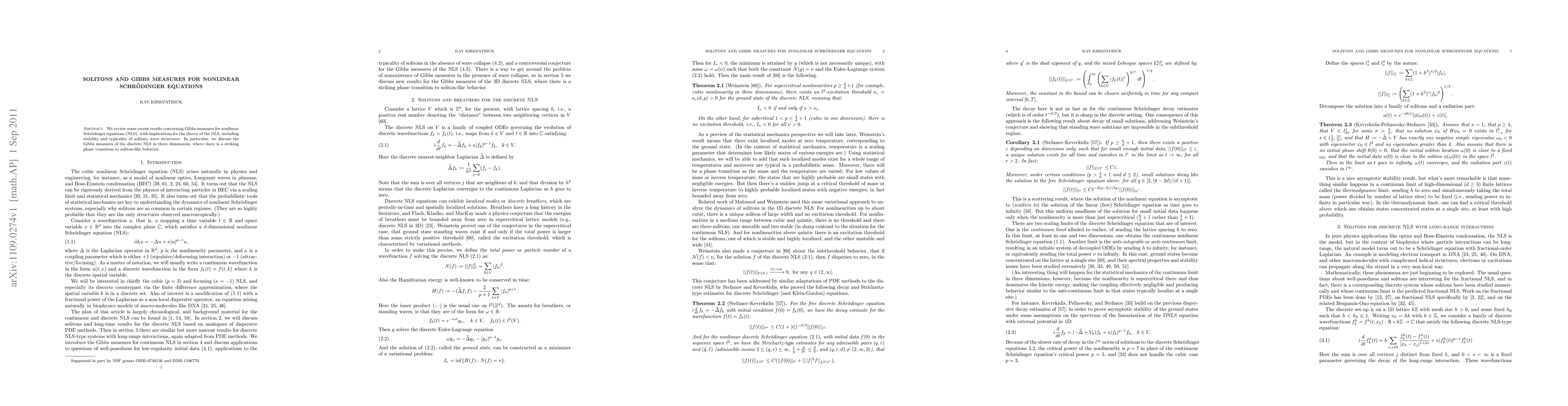 We review some recent results concerning Gibbs measures for nonlinear Schroedinger equations (NLS), with implications for the theory of the NLS, including stability and typicality of solitary wave structures. In particular, we discuss the Gibbs measures of the discrete NLS in three dimensions, where there is a striking phase transition to soliton-like behavior.