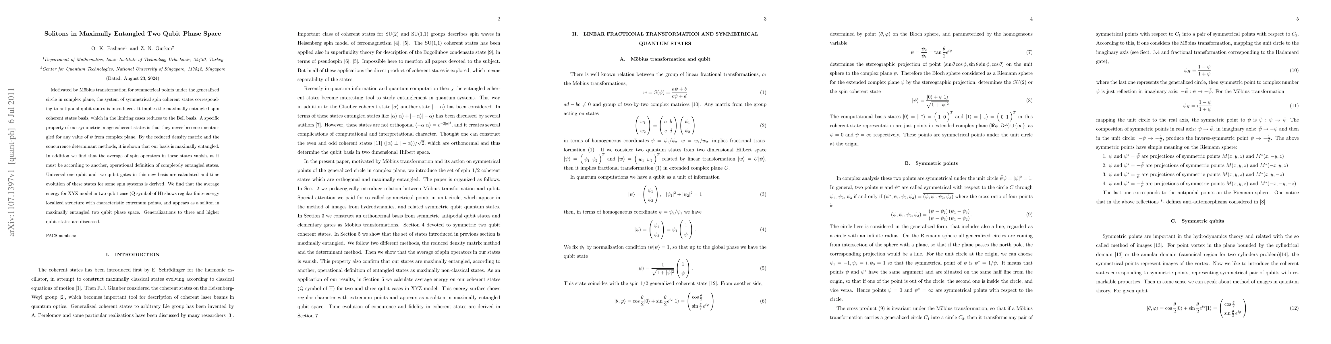 This paper introduces a new basis of maximally entangled spin coherent states derived from symmetrical points under Möbius transformation, showing they remain entangled. The study reveals soliton-like structures in the energy distribution of the XYZ model for two qubits, with generalizations to higher qubit systems.