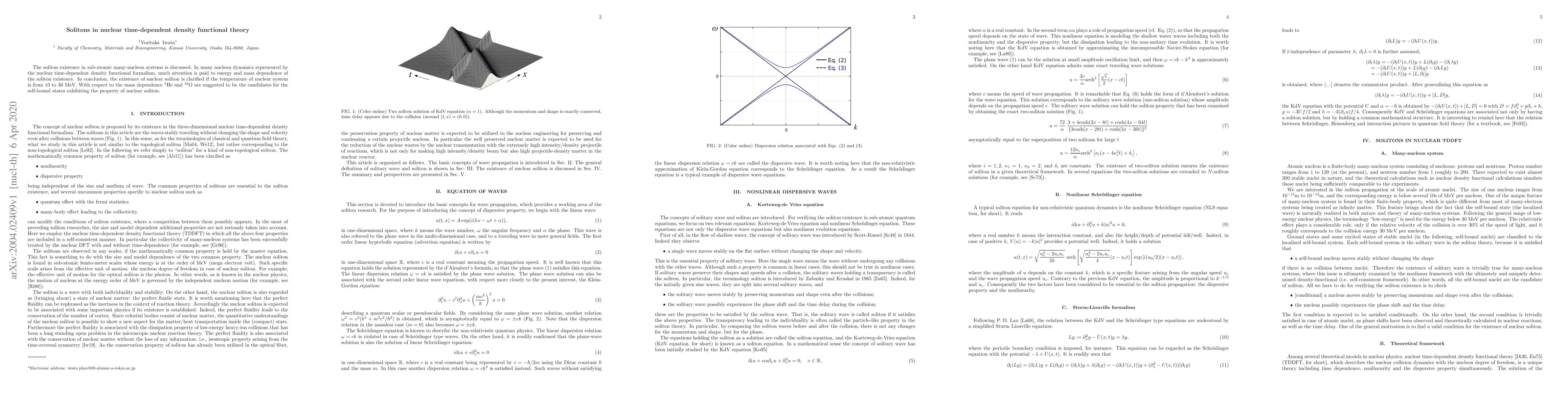 This paper investigates soliton existence in sub-atomic many-nucleon systems using nuclear time-dependent density functional theory, concluding that nuclear solitons are likely present at temperatures between 10 to 30 MeV, with $^{4}$He and $^{16}$O identified as potential candidates for self-bound soliton states.