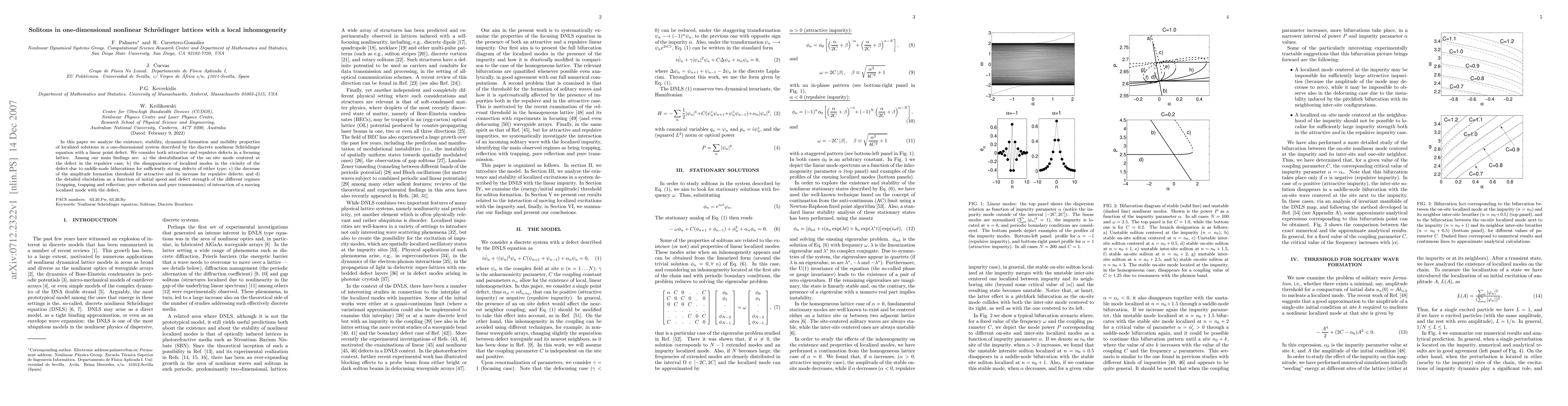 Research investigates solitons in one-dimensional nonlinear Schr"{o}dinger lattices with defects, finding destabilization, disappearance, and changes in amplitude formation thresholds for attractive and repulsive defects.