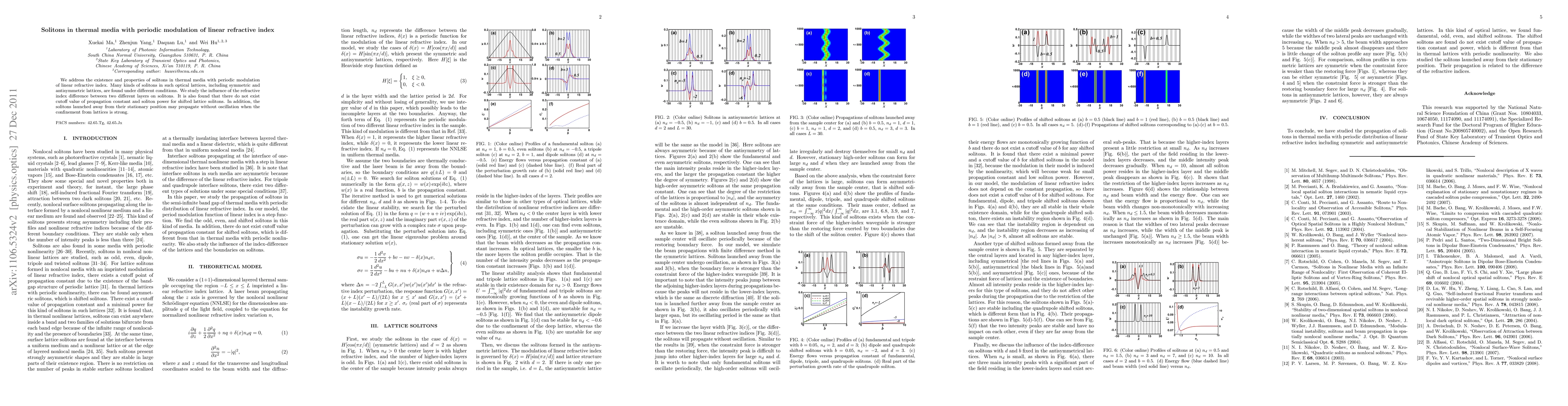 This paper investigates soliton behavior in thermal media with a periodically modulated linear refractive index, identifying various soliton types in symmetric and antisymmetric optical lattices. The study reveals that there is no cutoff for propagation constant and soliton power for shifted lattice solitons, and strong lattice confinement can allow solitons to propagate without oscillation.