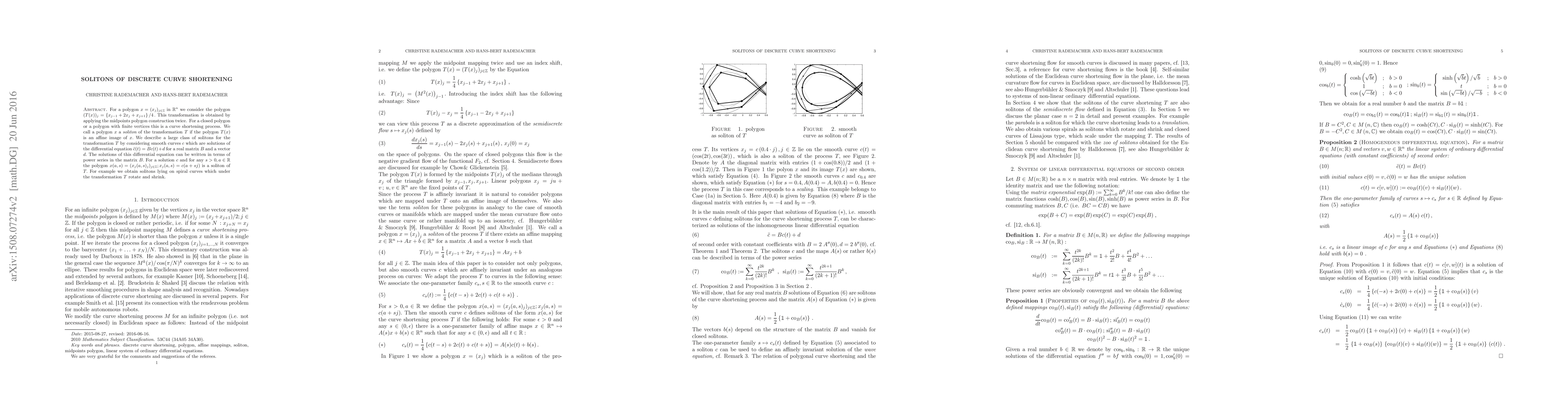 For a polygon in Euclidean space we consider a transformation T which is obtained by applying the midpoints polygon construction twice and using an index shift. For a closed polygon this is a curve shortening process. A polygon is called (affine) soliton of the transformation T if its image under T is an affine image of the polygon. We describe a large class of solitons by considering smooth curves which are solutions of a linear system of differential equations of second order with constant coefficients. As examples we obtain solitons lying on spiral curves which under the transformation T rotate and shrink.