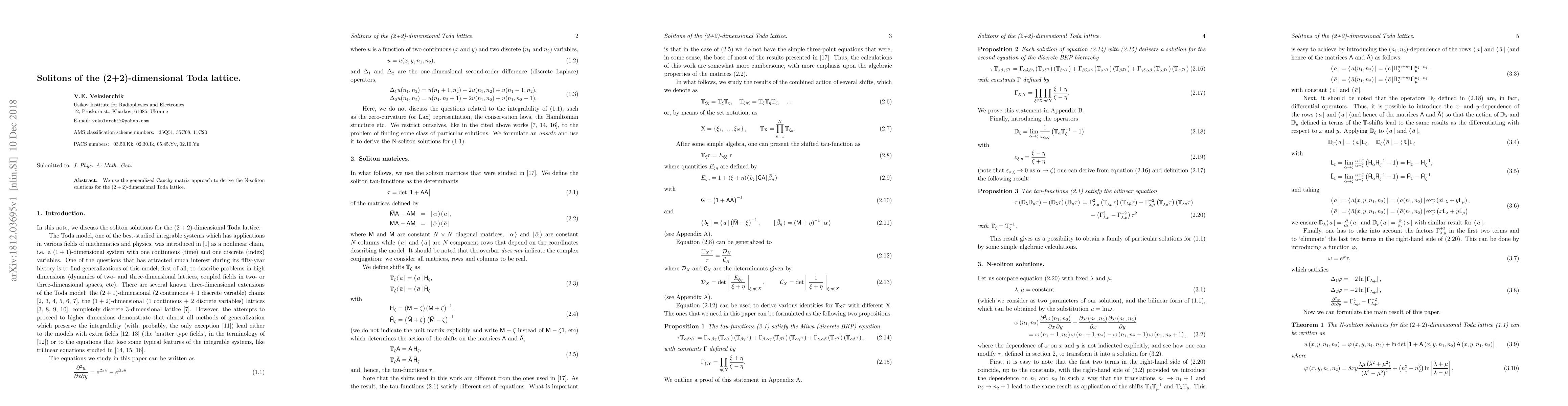 Summary: This paper employs the generalized Cauchy matrix approach to derive N-soliton solutions for the (2+2)-dimensional Toda lattice, providing a novel method for understanding soliton behavior in higher-dimensional systems.