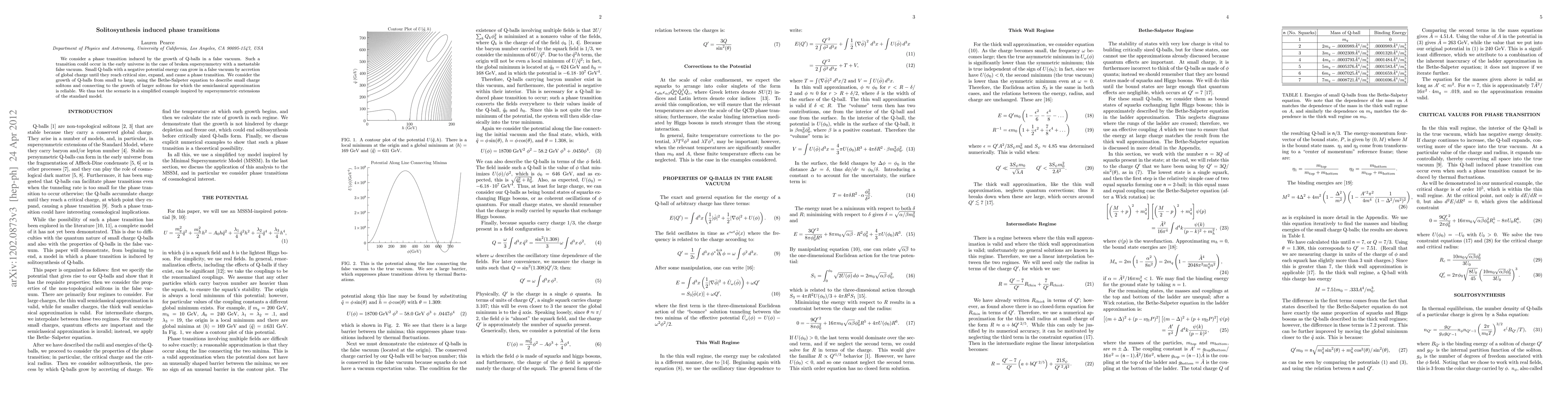 We consider a phase transition induced by the growth of Q-balls in a false vacuum. Such a transition could occur in the early universe in the case of broken supersymmetry with a metastable false vacuum. Small Q-balls with a negative potential energy can grow in a false vacuum by accretion of global charge until they reach critical size, expand, and cause a phase transition. We consider the growth of Q-balls from small to large, using the Bethe-Salpeter equation to describe small charge solitons and connecting to the growth of larger solitons for which the semiclassical approximation is reliable. We thus test the scenario in a simplified example inspired by supersymmetric extensions of the standard model.