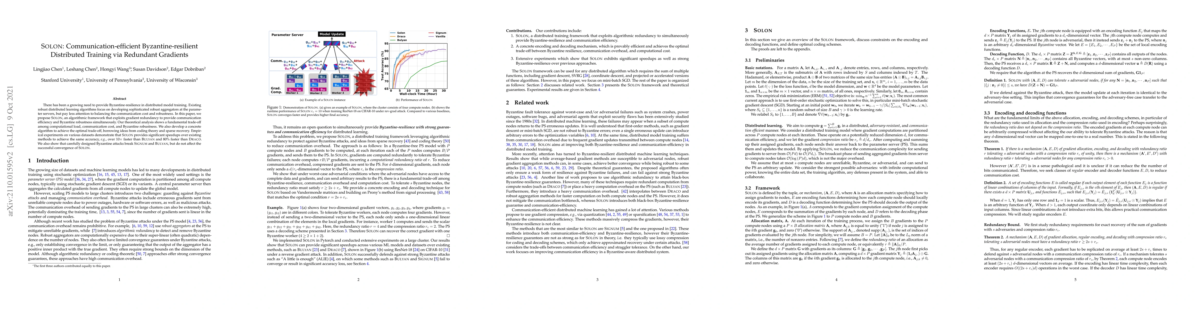 Solon introduces an efficient framework for Byzantine-resilient distributed training leveraging redundant gradients, balancing communication cost and robustness. Theoretical analysis and empirical results show Solon achieves significant speedups over existing methods while maintaining accuracy and resilience against Byzantine attacks.