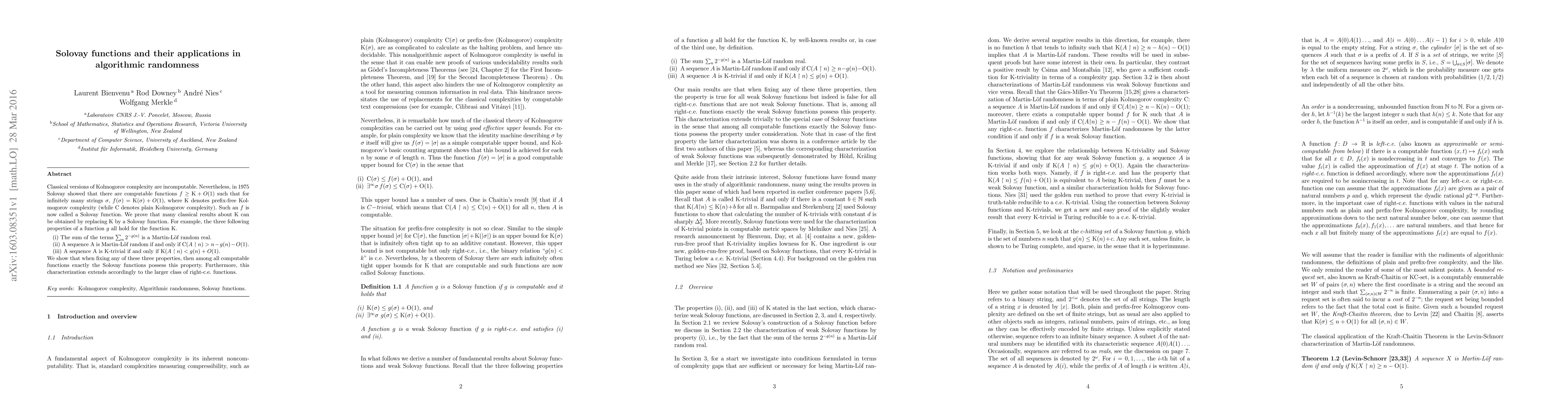 Researchers prove that Solovay functions can replace classical Kolmogorov complexity in various results about algorithmic randomness, offering a computable alternative to the incomputable classical version.