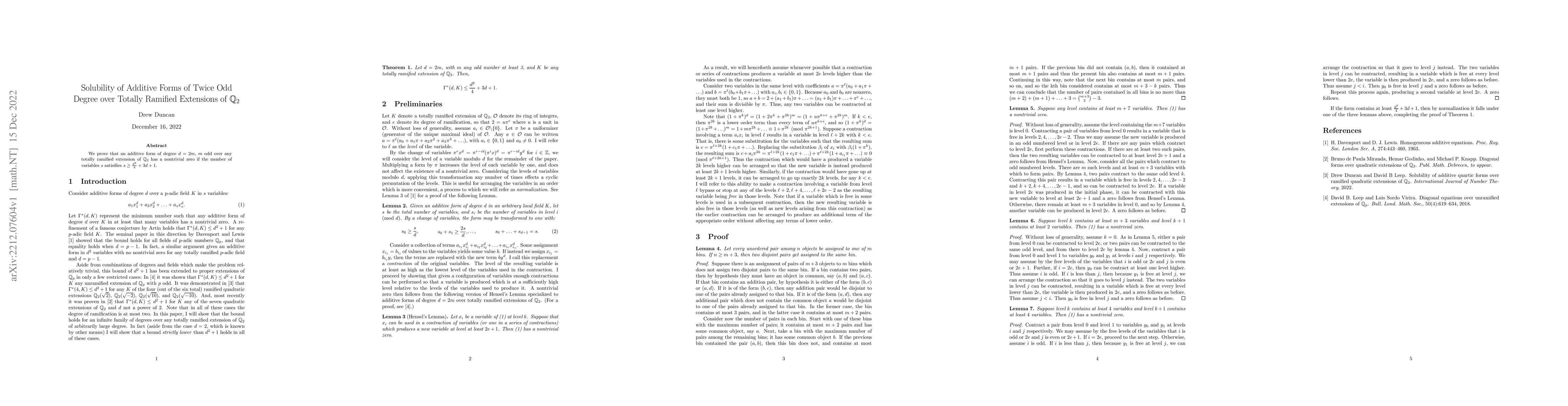 Summary: This paper demonstrates that an additive form of twice odd degree over totally ramified extensions of $\mathbb{Q}_2$ possesses nontrivial zeros when the number of variables exceeds a specific threshold determined by the degree. The threshold is given by $\frac{d^2}{4} + 3d + 1$.