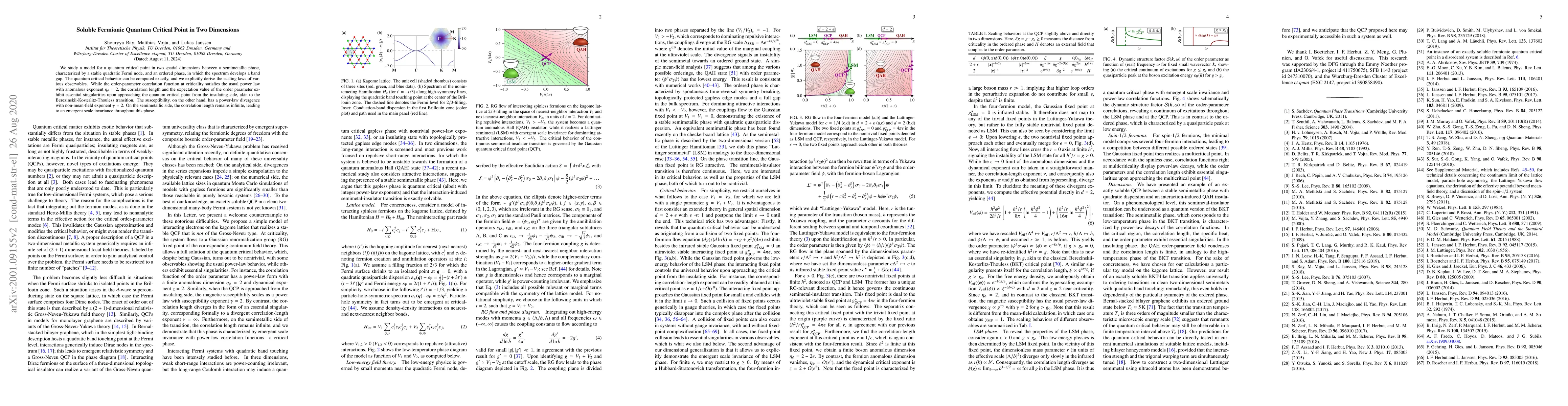 Researchers discovered a quantum critical point in two dimensions where a semimetallic phase transitions to an ordered phase, exhibiting unique scaling laws for correlation length and order parameter.