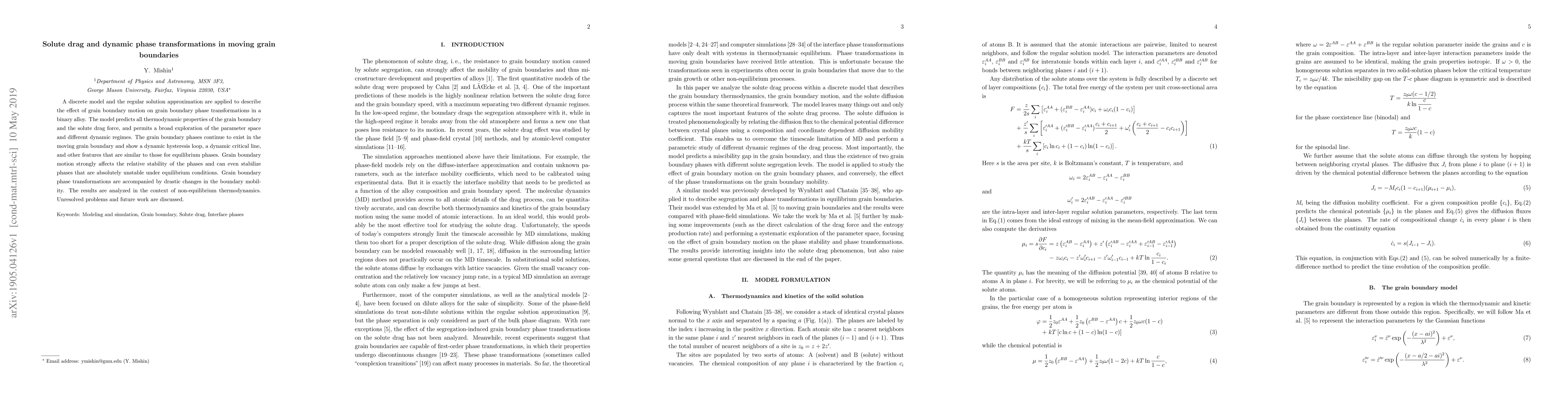This work distinguishes itself by treating solute drag phenomenologically, allowing for a broader exploration of dynamic regimes, and by preserving the discrete character of crystalline systems without relying on gradient approximations.
