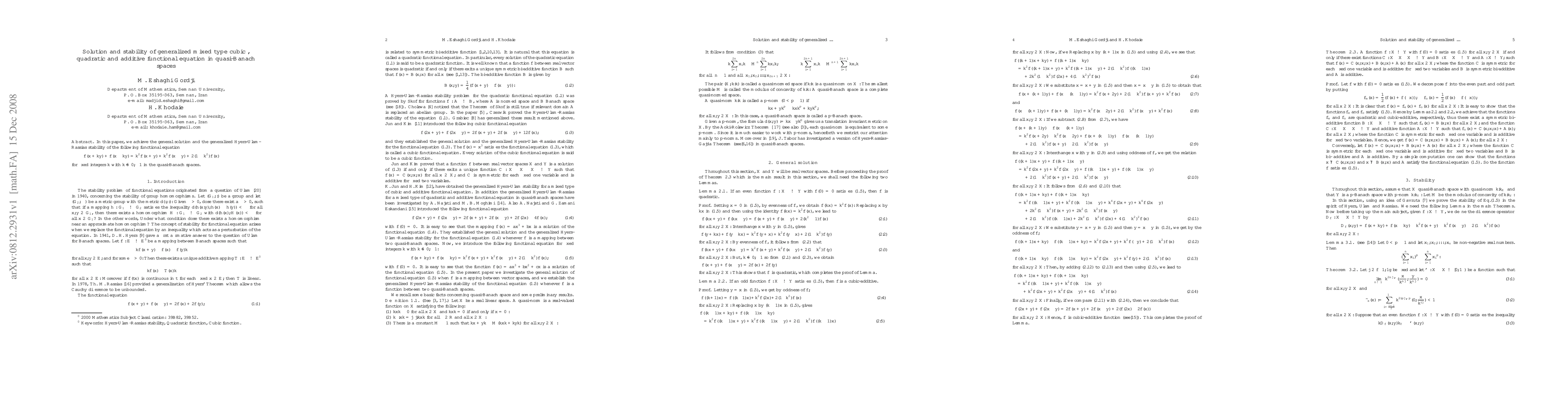 This paper presents the general solution and generalized Hyers-Ulam-Rassias stability for the functional equation involving cubic, quadratic, and additive terms in quasi-Banach spaces. The stability analysis ensures the equation's robustness under small perturbations.
